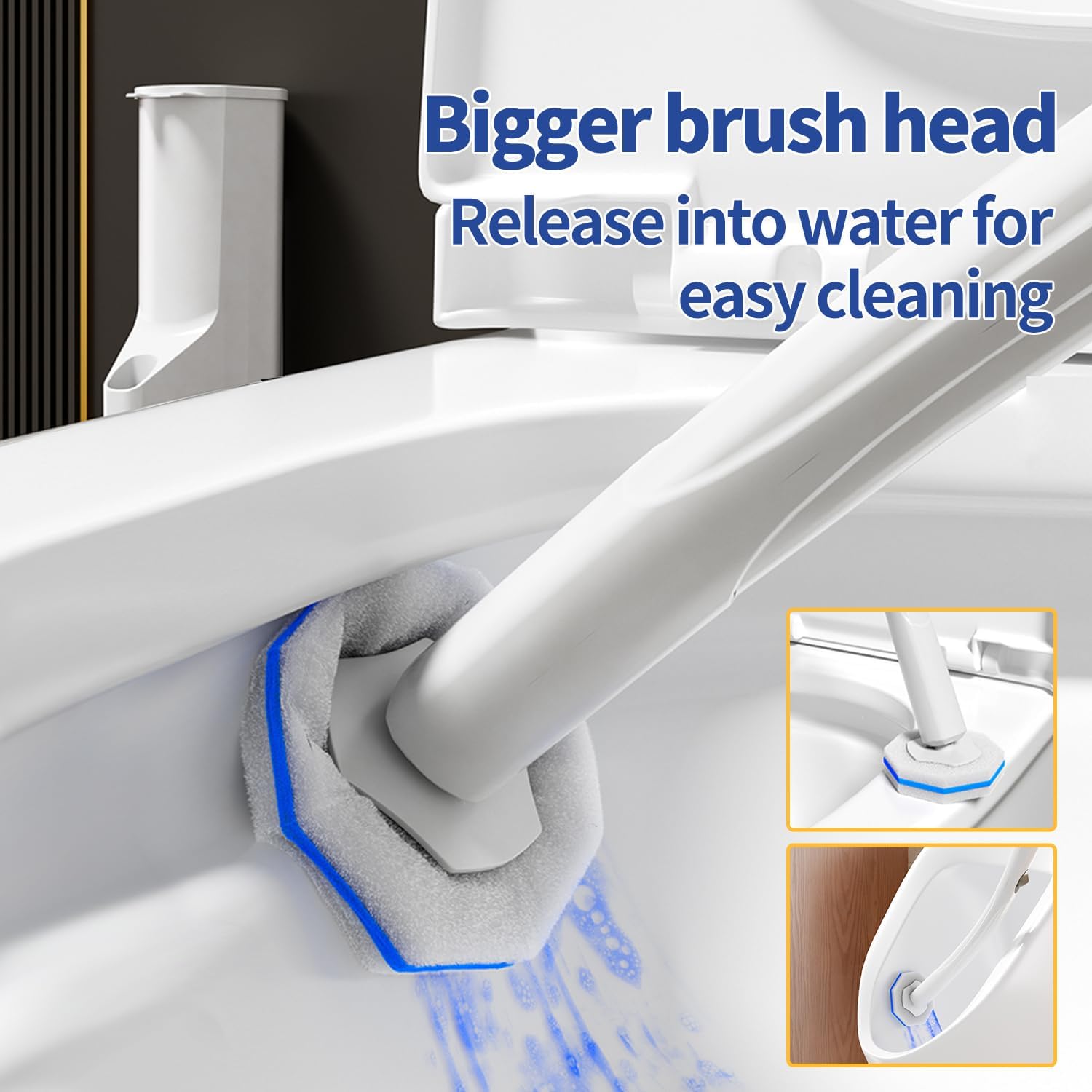 - Toilet Cleaning Head: The upgraded octagonal sponge head can clean hard to reach areas below the edge of the bowl and perform deeper and faster cleaning, making the toilet cleaning