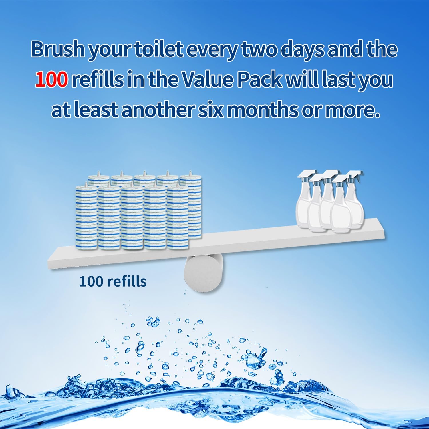 100pc Bulk Toilet Wand Refills - Disposable Toilet Brush Replacement Heads, Value Pack for Household Cleaning Bathroom cleaners Compatible Heads,washroom mats Brush Cleaning System,Clean Refill Pads.