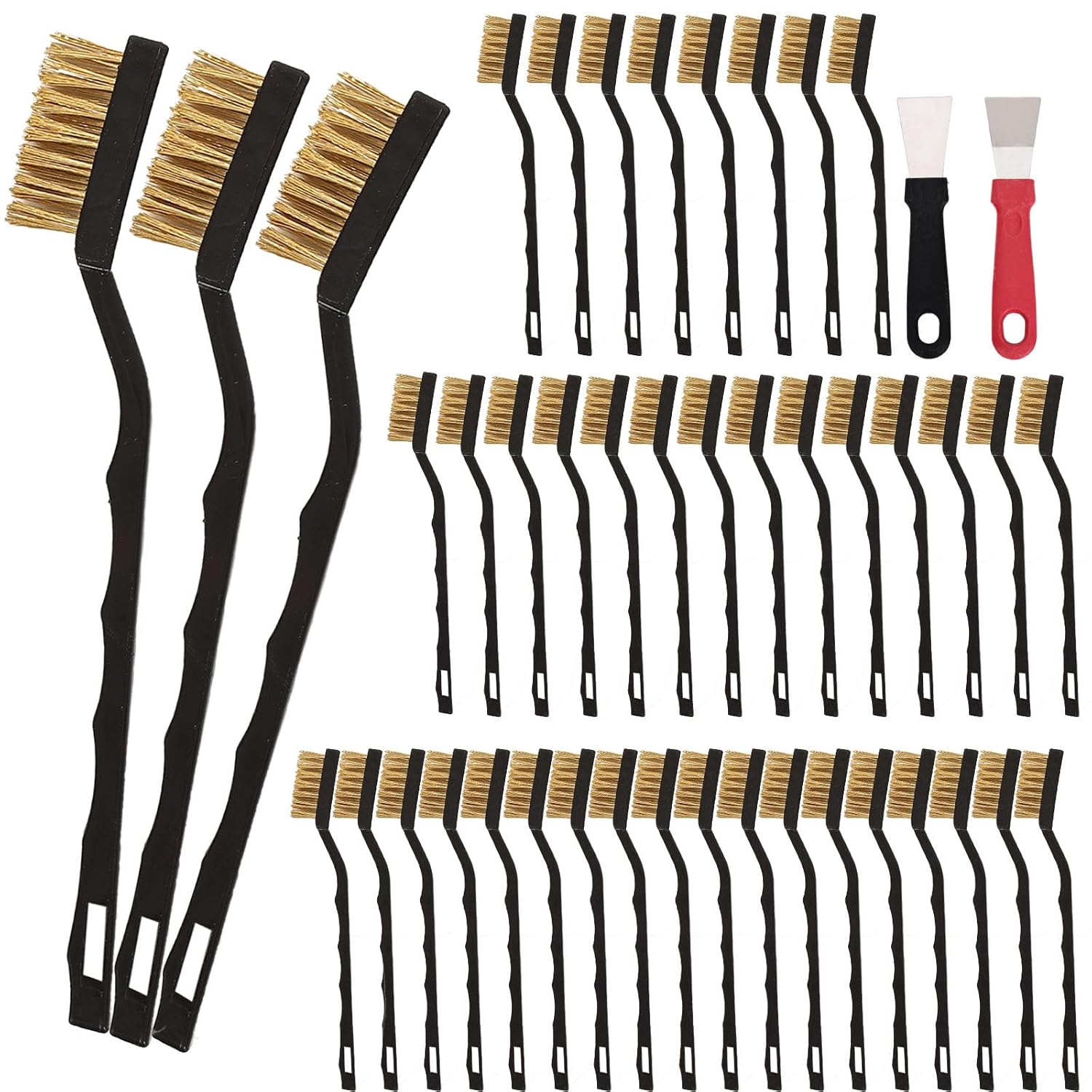 - 【What You Get】: The brass plated brush set includes 40 brass plated brushes and 2 cleaning scrapers, this small brass plated brush set will help you tackle various challenges with ease