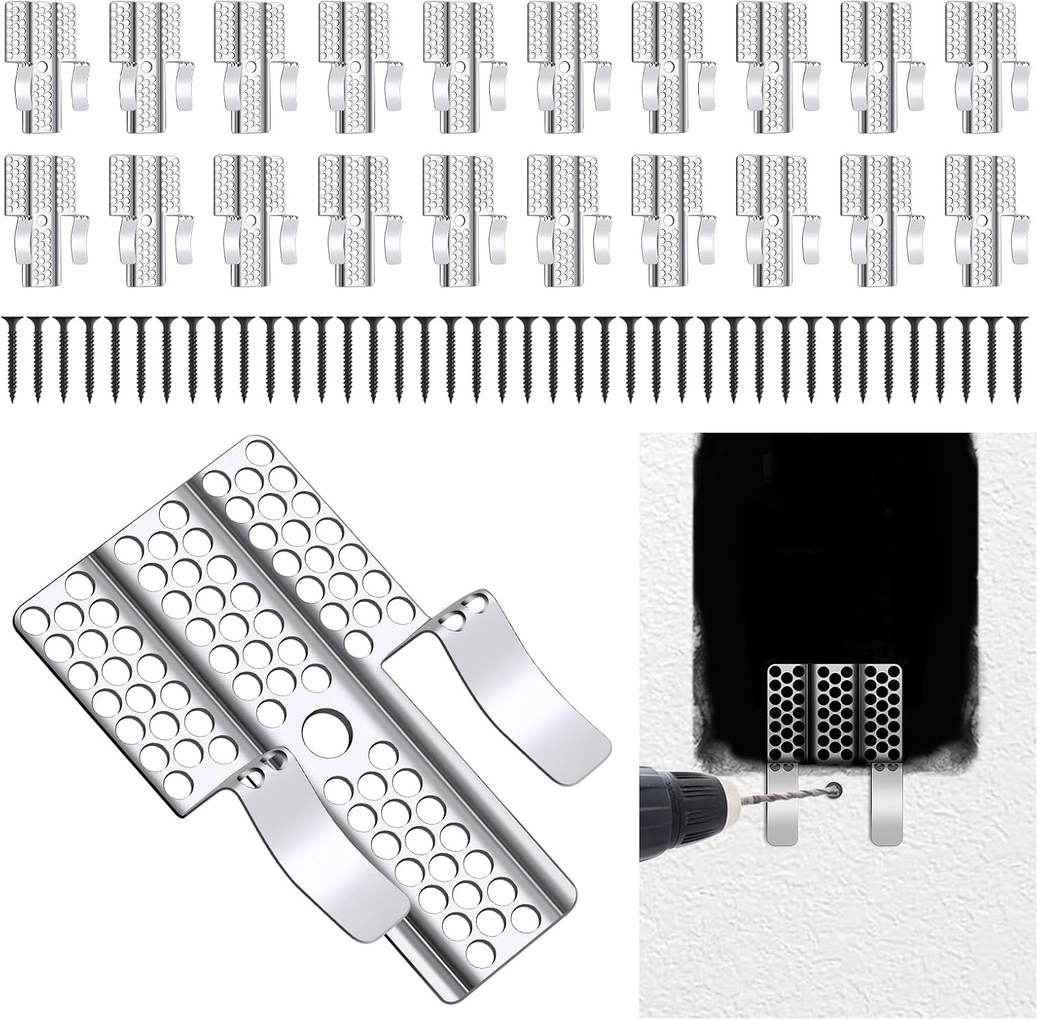 Drywall Repair Clips, 20 Pack Stainless Steel Wall Patch Kit with 40 Screws for 1/2 Inch Sheetrock, Professional Drywall Hole Repair Solution for DIY Home Repair