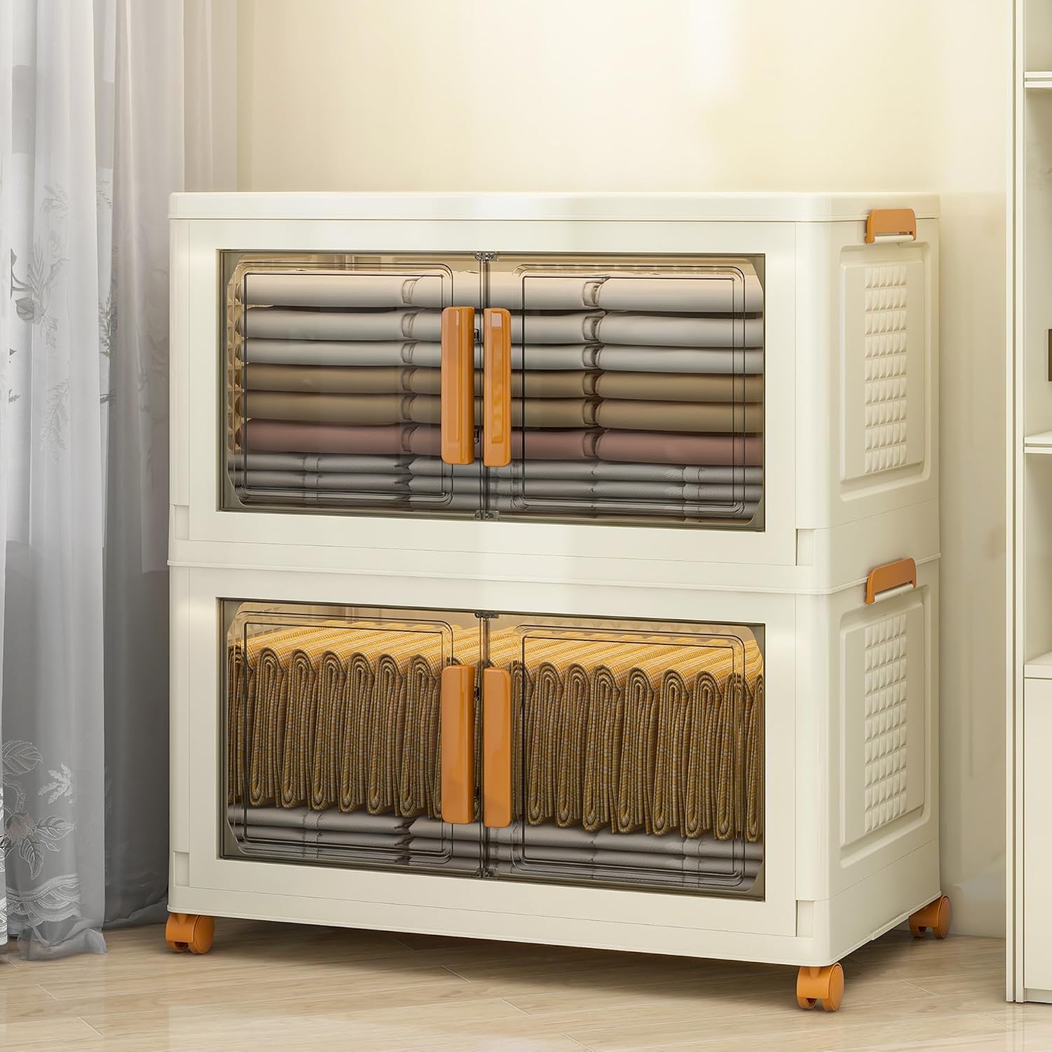 2 Tier Extra Large Stackable Storage Bins with 1 Lid 155 QT/Tier, Collapsible Plastic Box Storage with Wheels, Home Containers Boxes Closet Organizers for Living Room, Office, Dorm