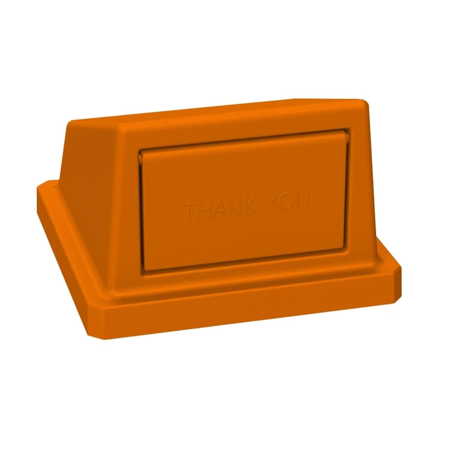 32 Gallon Square Slatted 100% Recycled Plastic Heavy-Duty Commercial Outdoor or Indoor Trash Can with Push Top Lid | Great for Schools and Businesses - Orange