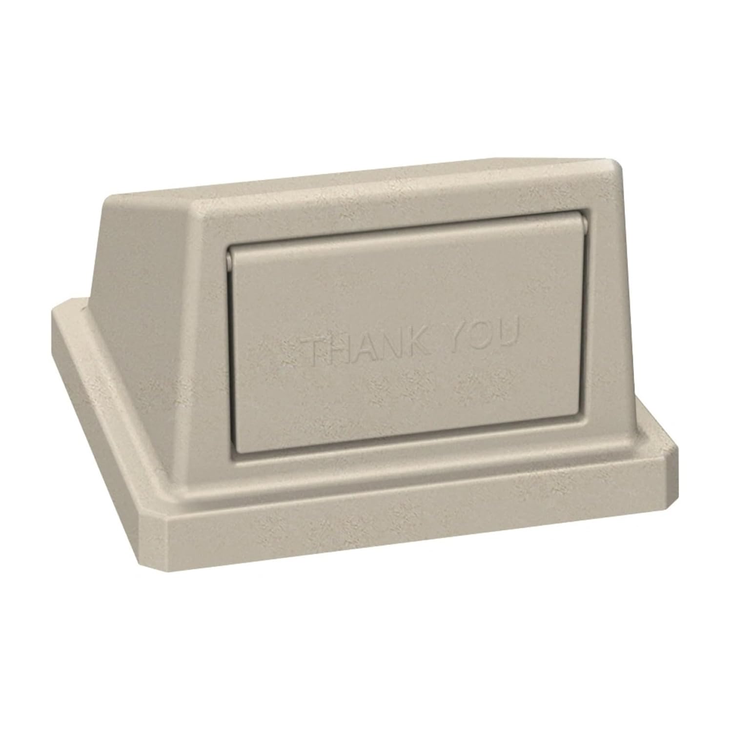 32 Gallon Square Slatted 100% Recycled Plastic Heavy-Duty Commercial Outdoor and Indoor Trash Can with Push Top Lid | Great for Schools and Businesses - Beige Granite