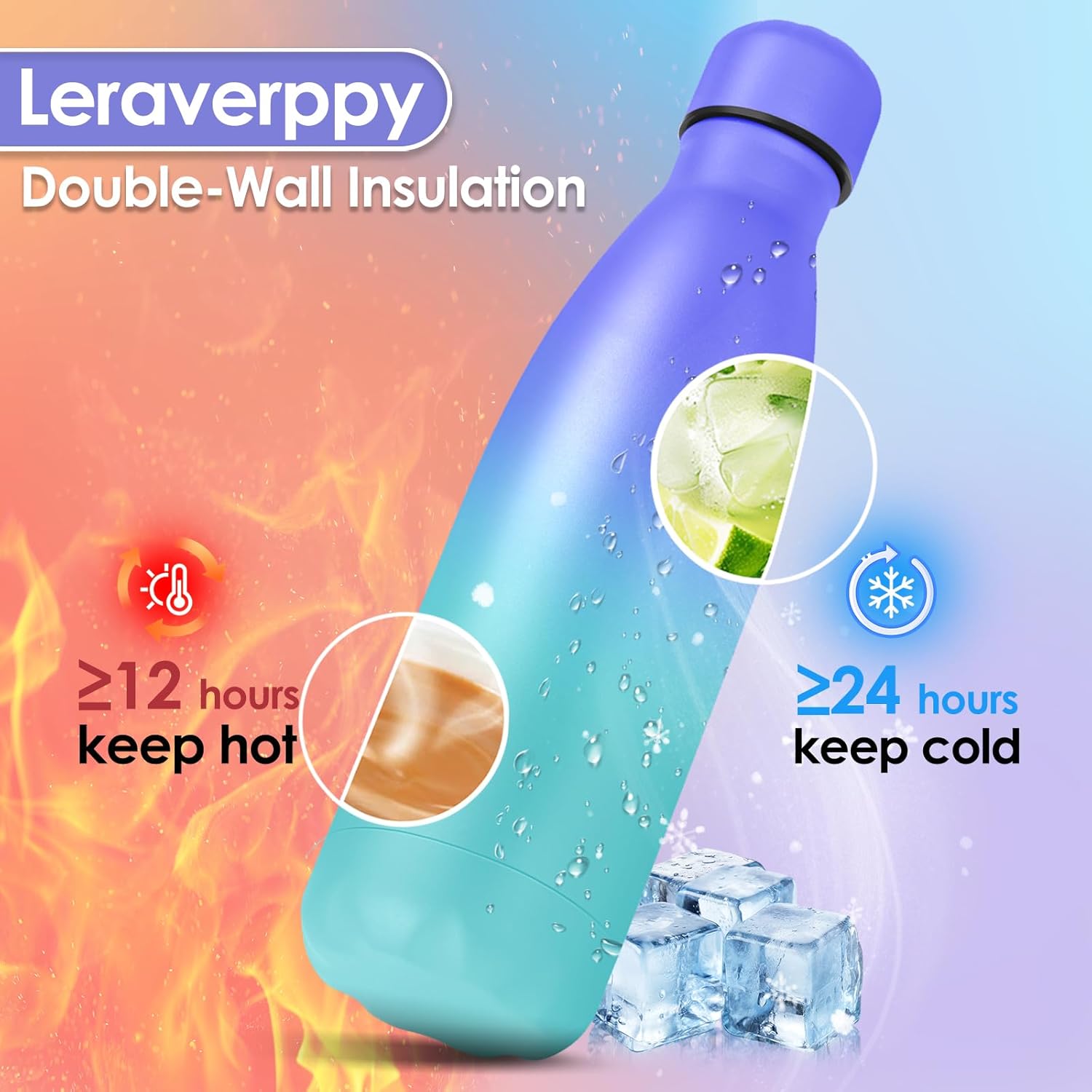 - 《Double Wall Vacuum Metal Bottle and Amazing Gift》This insulated water bottle is double walled and vacuum sealed,which keeping them ice cold for 24 hours and steaming hot for 12 hours.With healthy and reusable stainless steel,our durable everyday water bottle is suitable for everyday use and also as an amazing gift for yourself or your partners friends family colleagues employees teachers etc.
