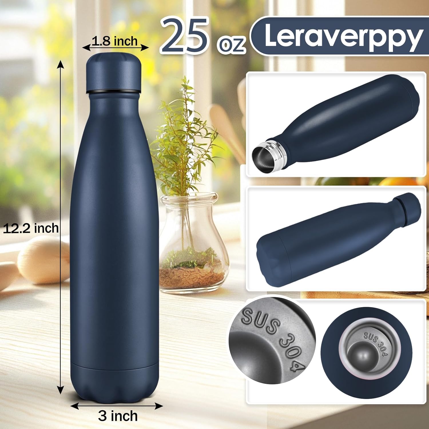 25oz Cola-Bottle Shaped Stainless Steel Leak-proof Water Bottle,Double Wall Vacuum Insulated Metal,Travel Mug For Sports Indoors & Outdoors,BPA-Free School Kids Flasks,Navy(1 Pack)