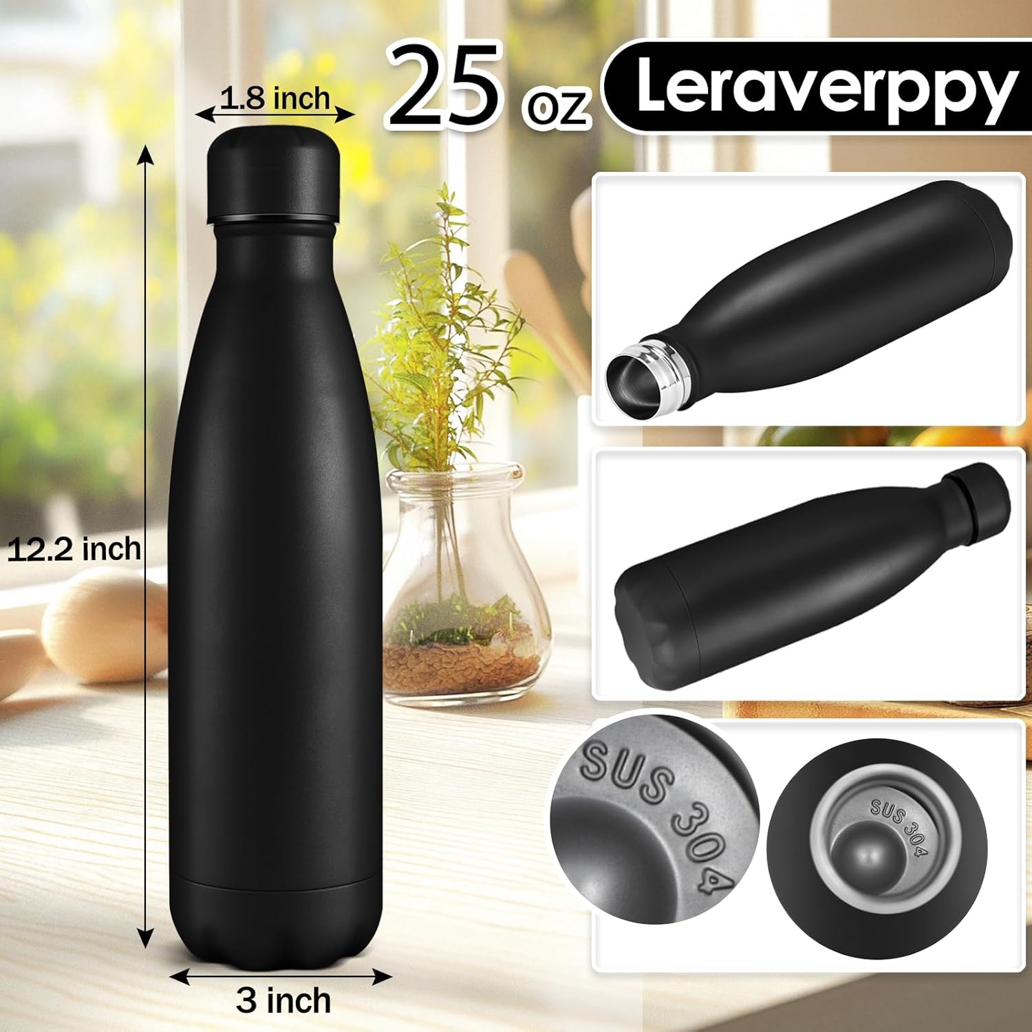 25oz Cola-Bottle Shaped Stainless Steel Leak-proof Water Bottle,Double Wall Vacuum Insulated Metal,Travel Mug For Sports Indoors & Outdoors,BPA-Free School Kids Flasks,Black(1 Pack)