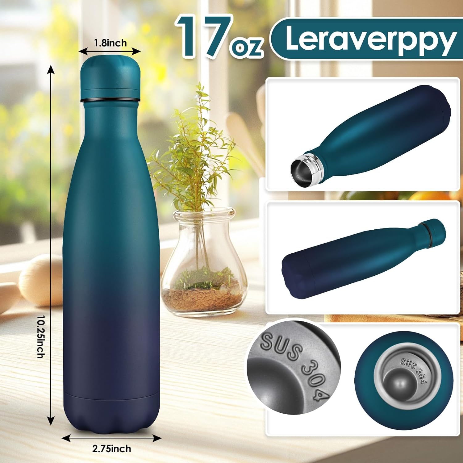 17oz Cola-Bottle Shaped Stainless Steel Leak-proof Water Bottle,Double Wall Vacuum Insulated Metal,Travel Mug For Sports Indoors & Outdoors,BPA-Free Kids Flasks,Dark Night(8 Pack)