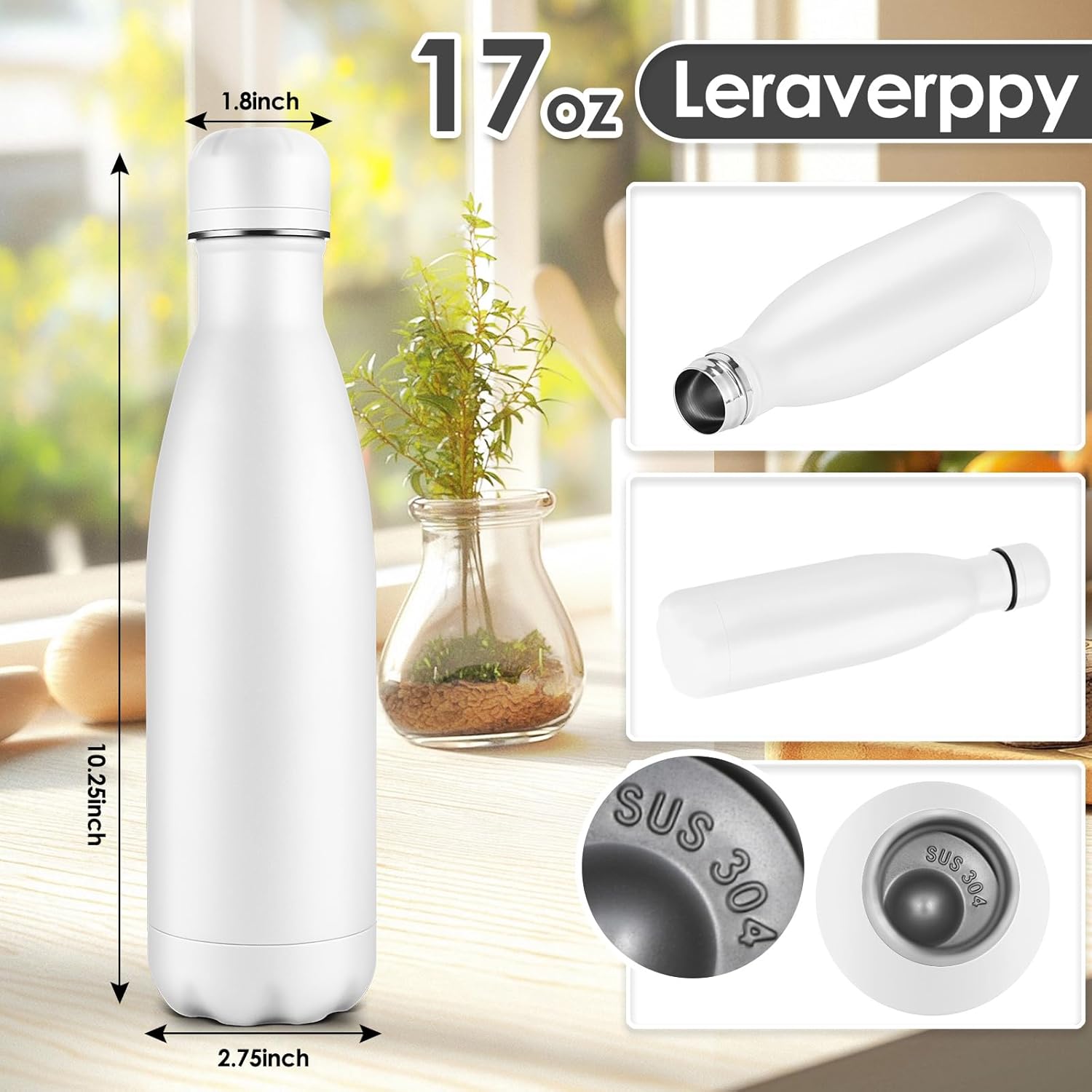 17oz Cola-Bottle Shaped Stainless Steel Leak-proof Water Bottle,Double Wall Vacuum Insulated Metal,Travel Mug For Sports Indoors & Outdoors,BPA-Free School Kids Flasks,White(4Pack)