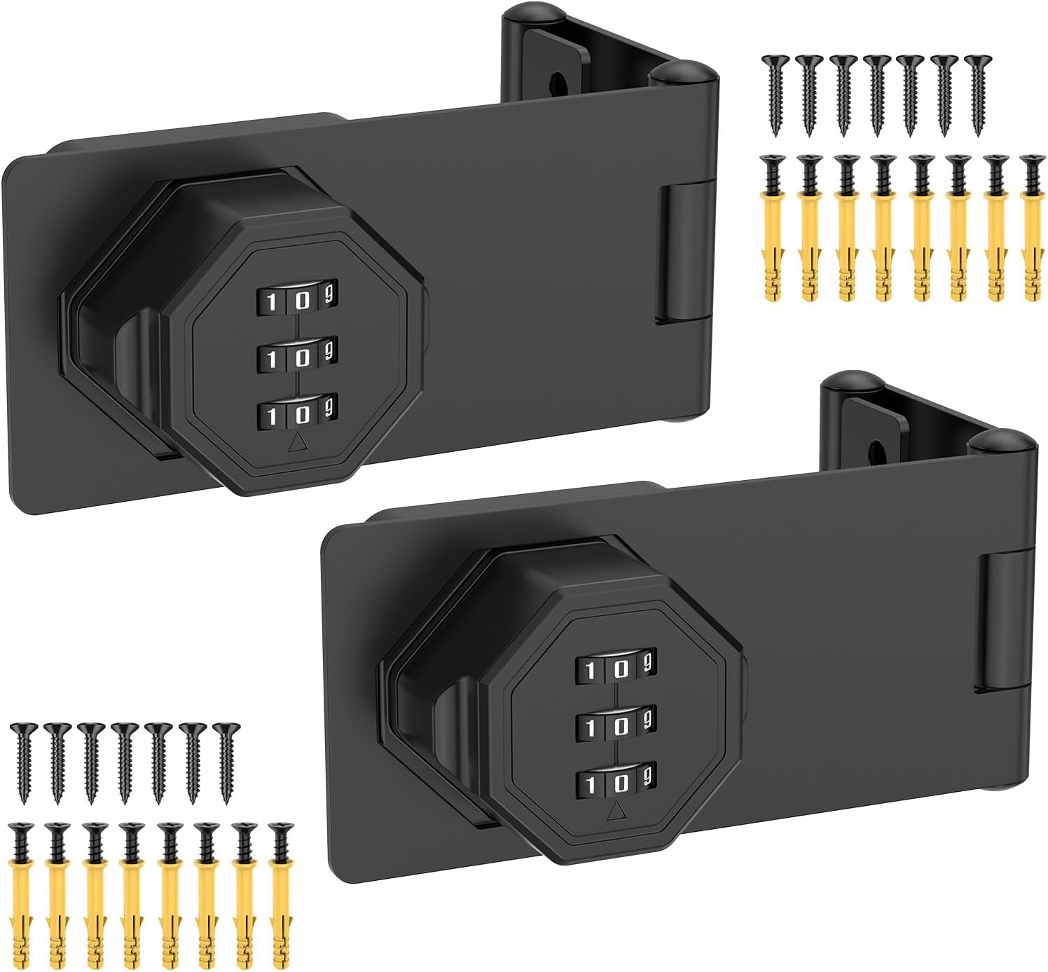90 Degree 3-Digit Combination Cabinet Lock, Zinc Alloy Keyless Folding Hasp Lock Latch, Password Security Rotary Door Latch for Office File Cabinet, Drawer, Locker, Cupboard (2, Black)
