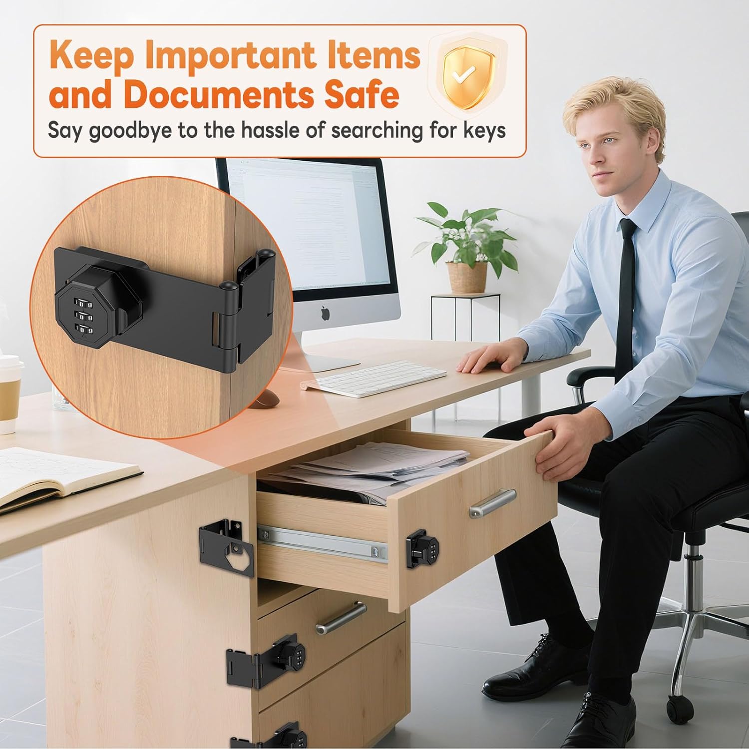 - Multi-Scenario Adaptation: This folding cabinet door lock is designed for 90° angle cabinets, support left & right bi-directional flexible installation, widely adapted to office filing cabinets, drawers, storage cabinets, safes, mailboxes, etc., to enhance the security level of different cabinets