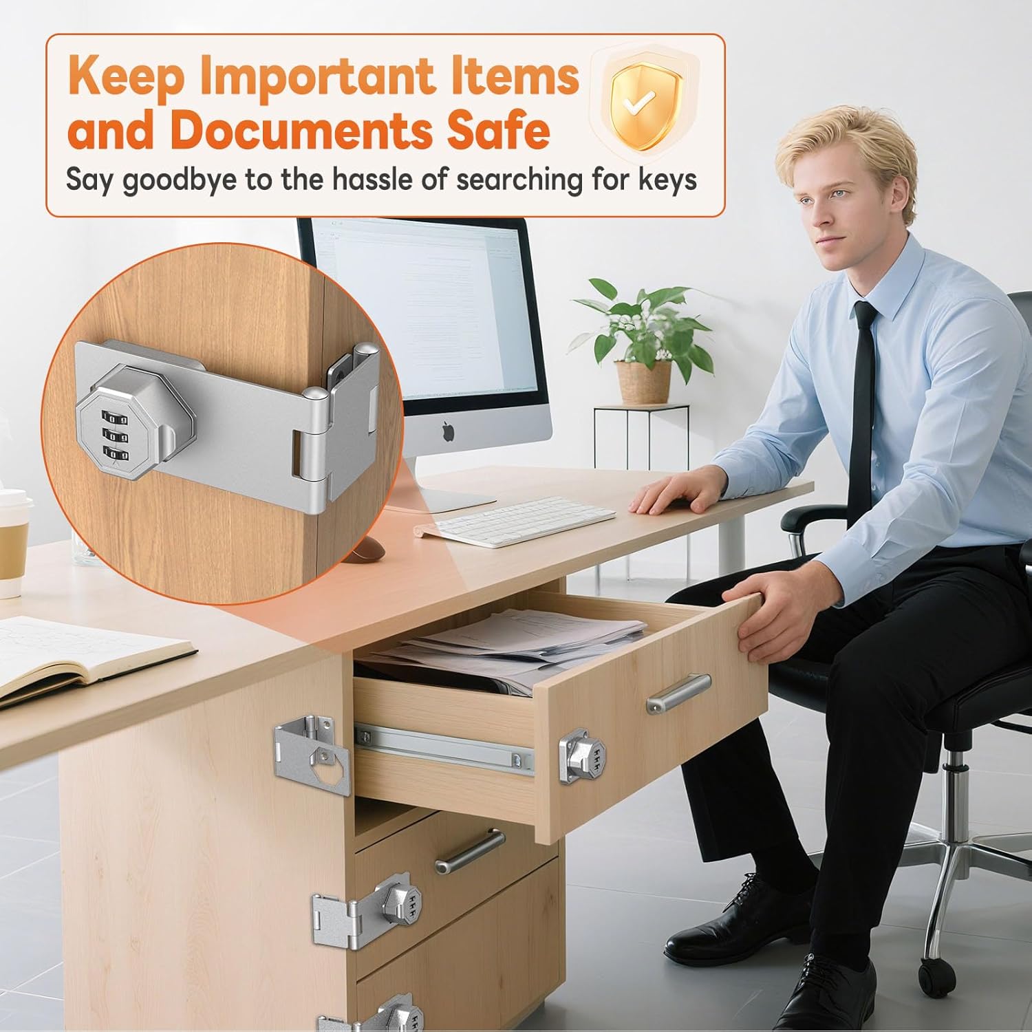 - Multi-Scenario Adaptation: This folding cabinet door lock is designed for 90° angle cabinets, support left & right bi-directional flexible installation, widely adapted to office filing cabinets, drawers, storage cabinets, safes, mailboxes, etc., to enhance the security level of different cabinets