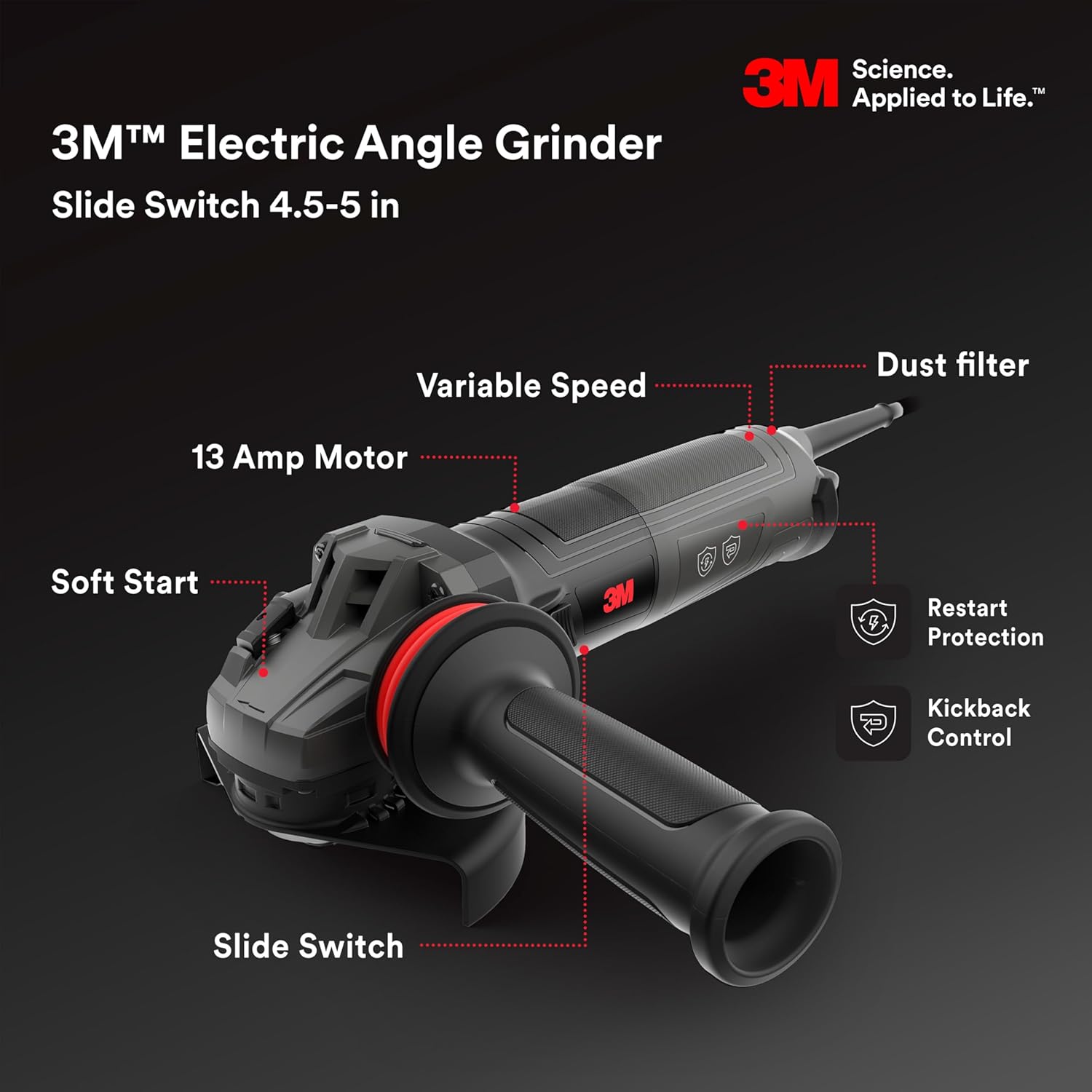 3M Electric Angle Grinder, 11131, VS, 6 in Paddle Switch, 13-Amp, 120V, for Cutting, Grinding, Polishing and Rust Removal,1 EA