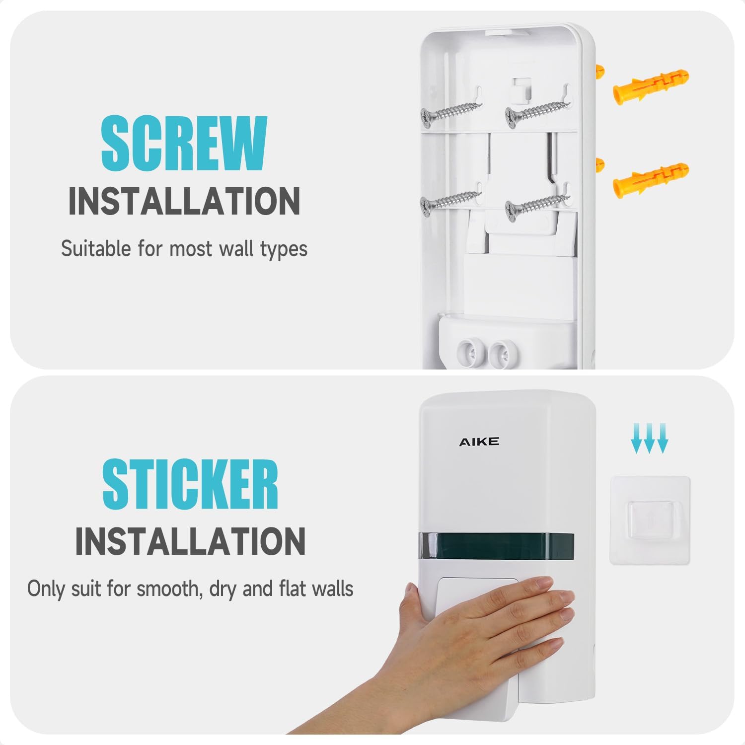 AIKE Wall Mount Liquid Soap Dispenser, 27oz Large Capacity with Extended Pump for Commercial Bathrooms(White)