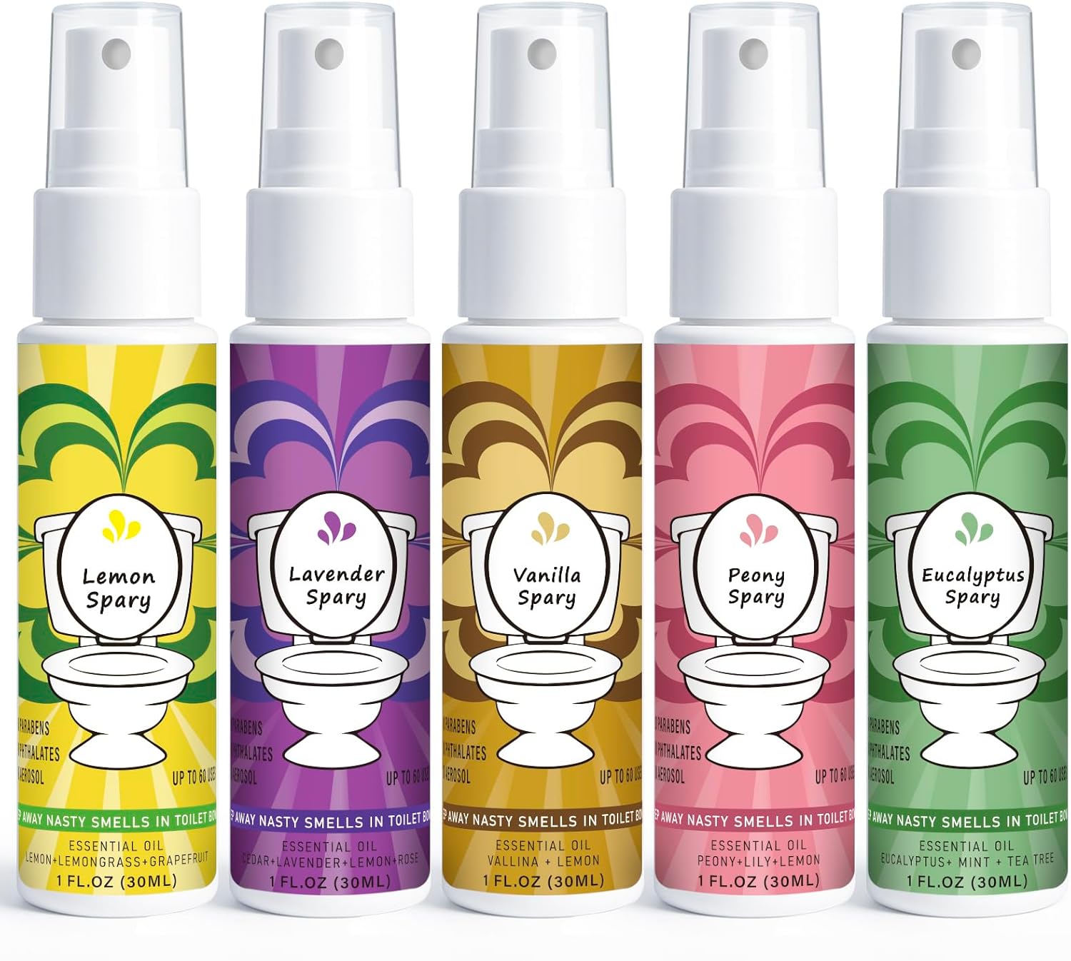 - 5 Fresh Favorites in One Set – Bright Lemon, calming Lavender, floral Peony, warm Vanilla and cool Eucalyptus. From crisp to calming, these scents keep your toilet fresh and inviting