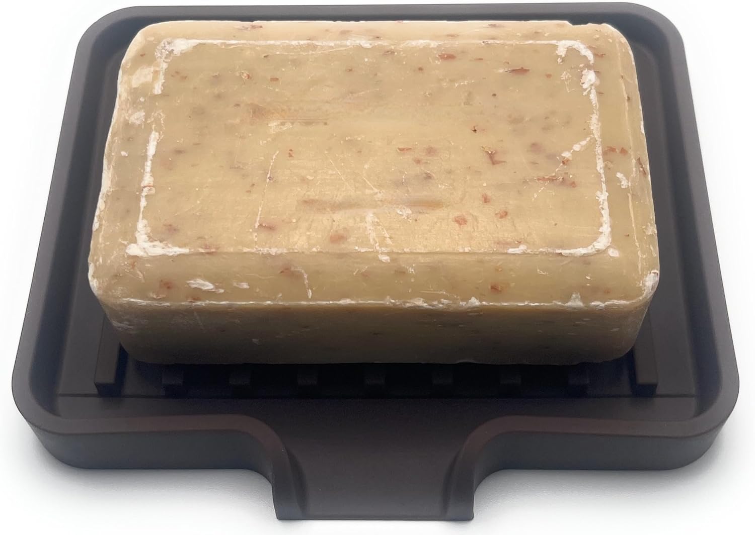 Happitasa Silicone Soap Dish Tray and Sponge Holder with Drain Chute, Pack of 2 | Bathroom and Kitchen Sink Organizer Caddy (Dark Chocolate, 5.2"x4", 7.2 Ounces)