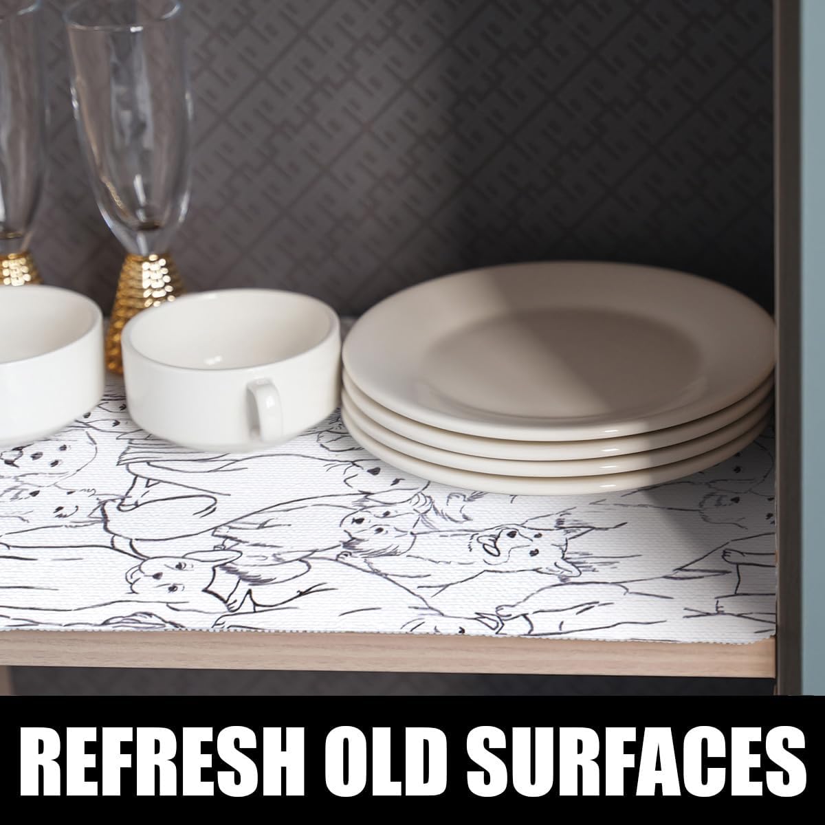 Animal Shelf and Drawer Liner for Cabinets, 12IN x 20FT Non-Adhesive and Strong Non-Slip Dog Shelf Cabinet Drawer Liners for Kitchen, Waterproof Cupboard Liners,Easy to Clean