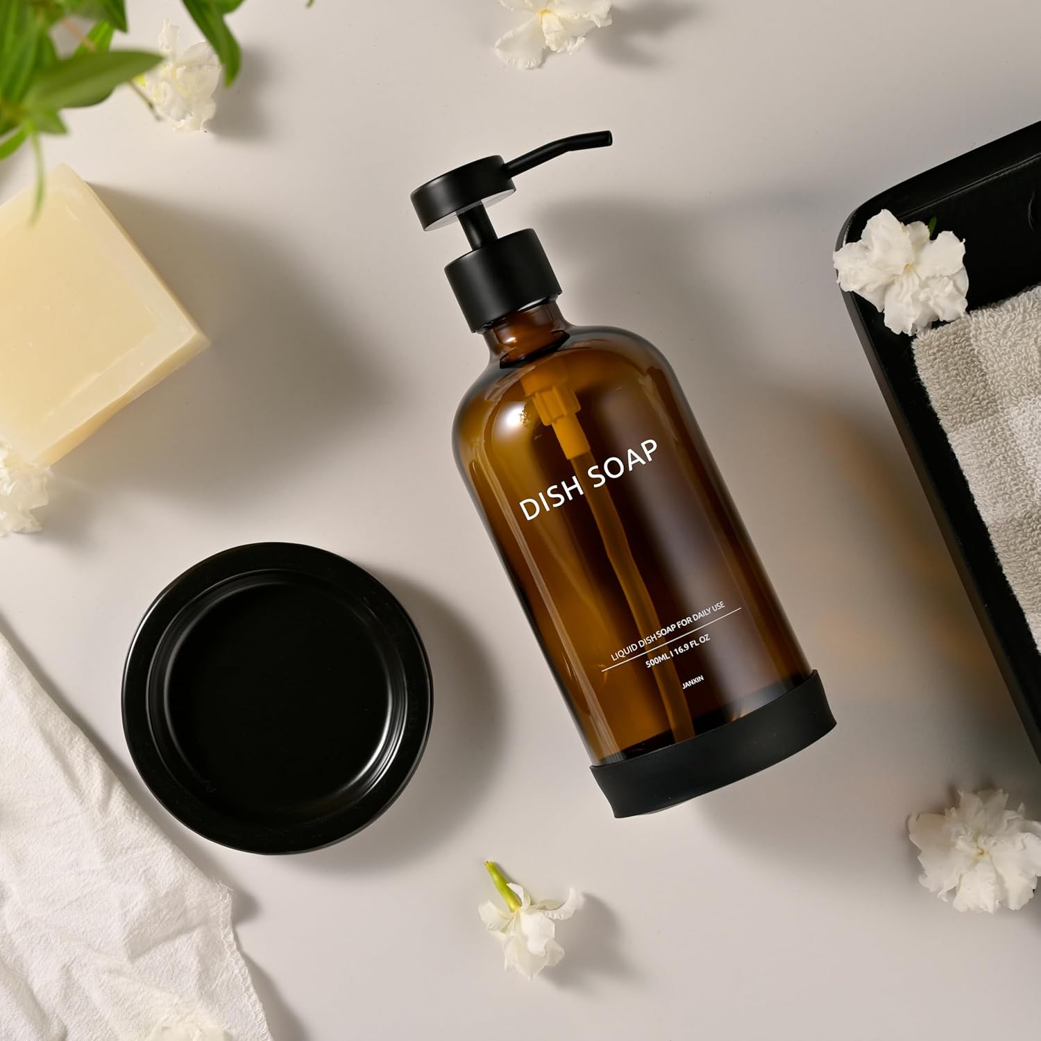 - LUXURY SOAP DISPENSER SET: Transform your kitchen or bathroom decor instantly with our luxurious kitchen soap dispenser set, This set includes one 16.9 Oz/500 premium glass bottles with 2CC stainless steel pumps, one ceramic tray . Great for upgrading your kitchen and bathroom countertops with this stylish soap dispenser set