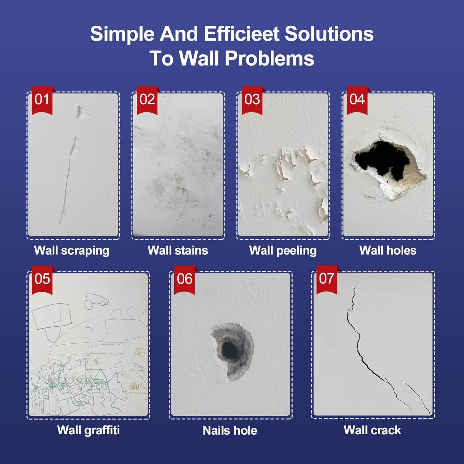 - Versatile Surface Fixer:Repairs dents, cracks, nail holes on many surfaces including drywall, plaster, wood, and stucco. Works seamlessly for household walls or professional renovation projects.