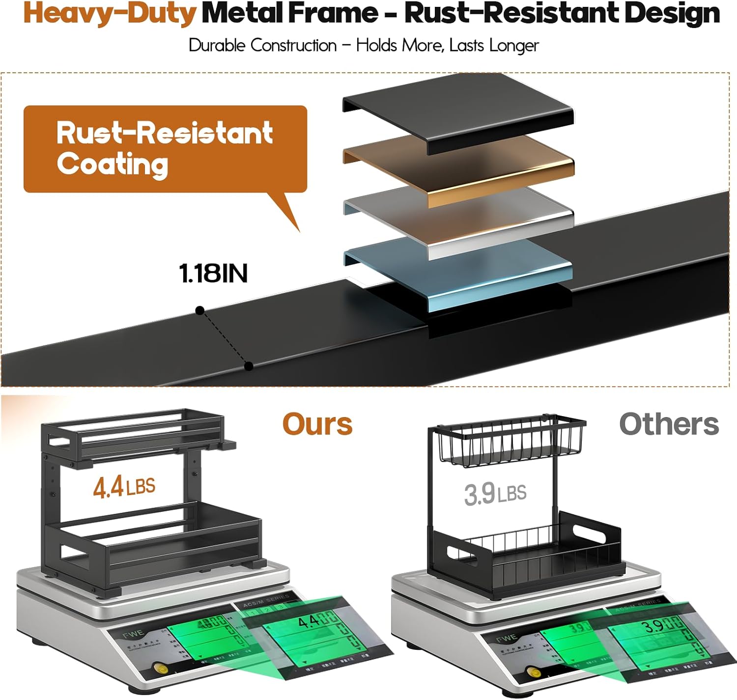 - 【Sturdy metal sheet frame& Rust-Proof】The under sink organizer is built from solid metal sheets with a strong frame and superior rust-resistant design, making it durable and ideal for long-term use in humid areas like kitchens,bathrooms and Laundry Room.