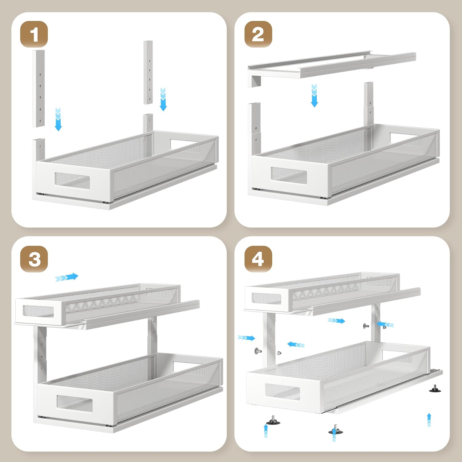 - 【Easy Installation】Say goodbye to complicated assembly! With 90% of the components pre-assembled, simply tighten 2 screws and your spacious undersink organizers is ready in just 40 seconds.