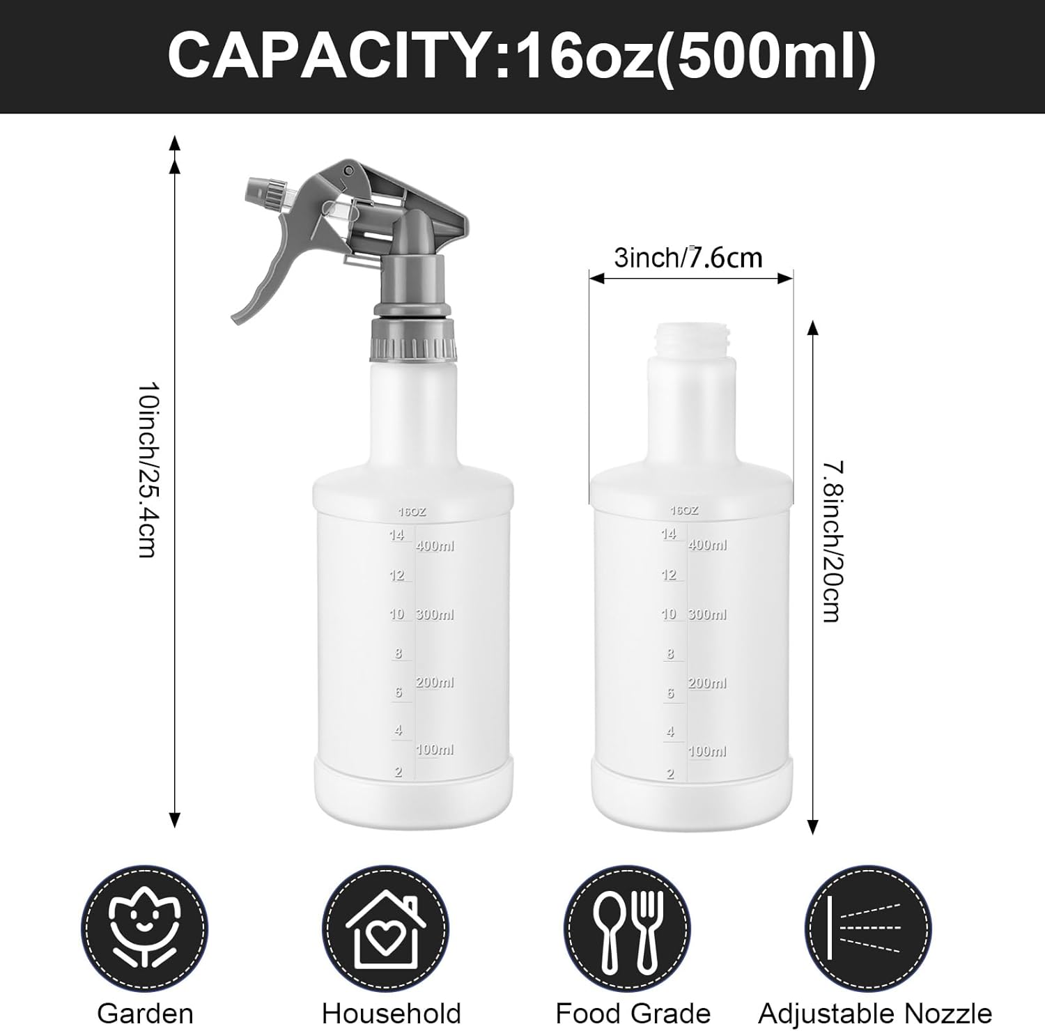 - Multi Functions: the 16oz spray bottles can be applied to clean kitchen and bathroom, for hairdressing in salon, watering for kinds of plants and vegetables, car washing, home, lawn, and garden tidying; These spray bottles can meet most of your cleaning needs, bringing you much convenience