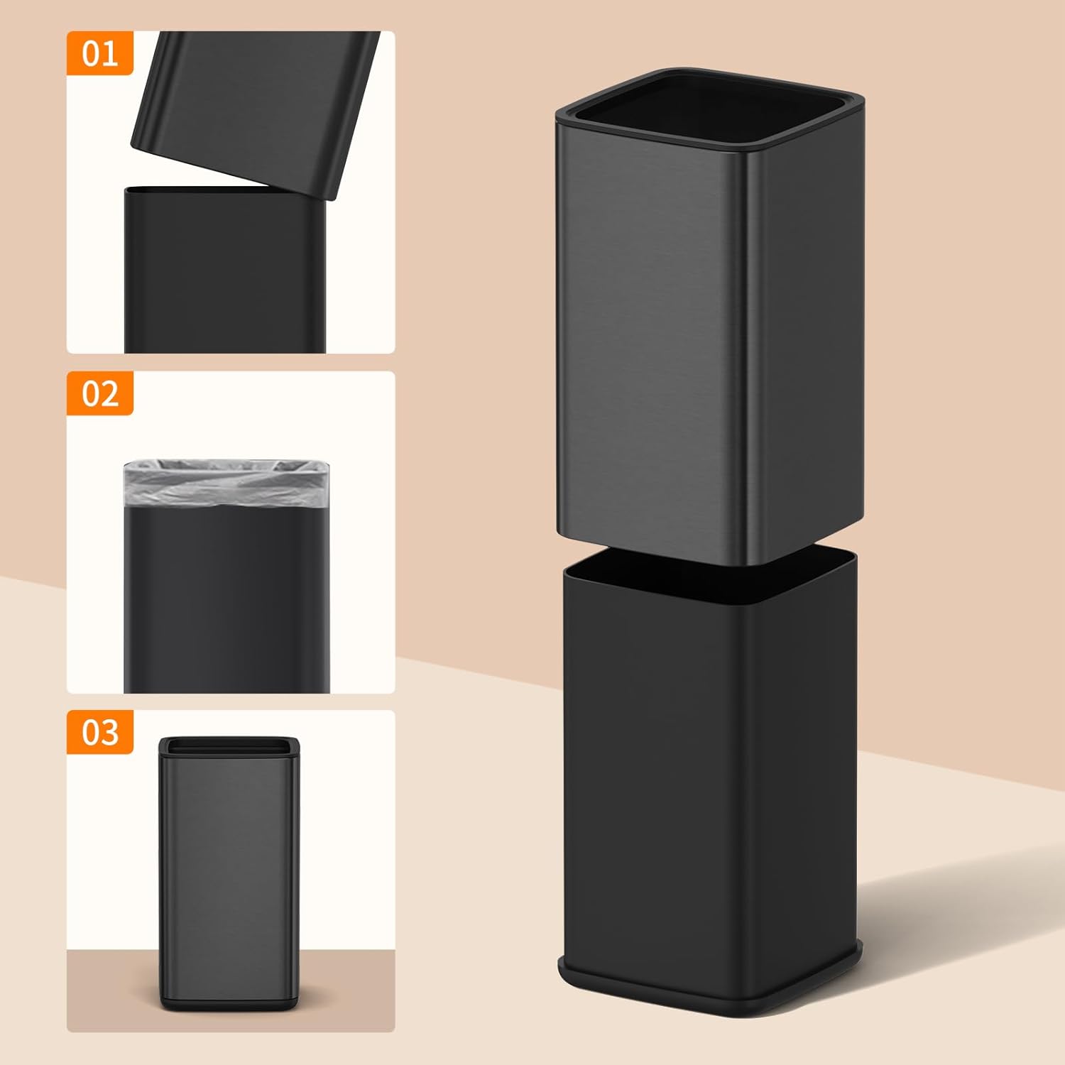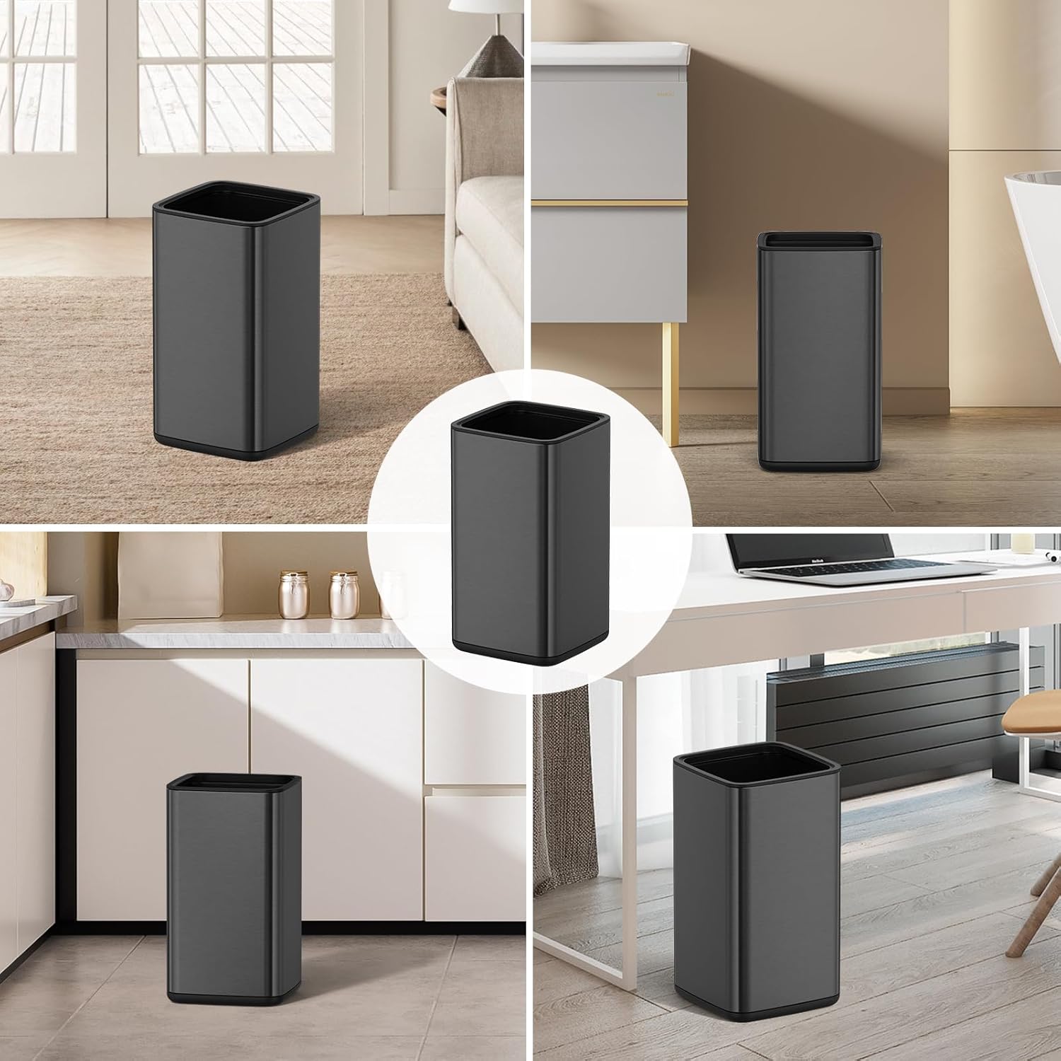 - QUICK & EASY DISPOSAL – Open Top design is perfect for busy homes, restaurants, restrooms, offices, lobbies, stores – quick & easy trash disposal.