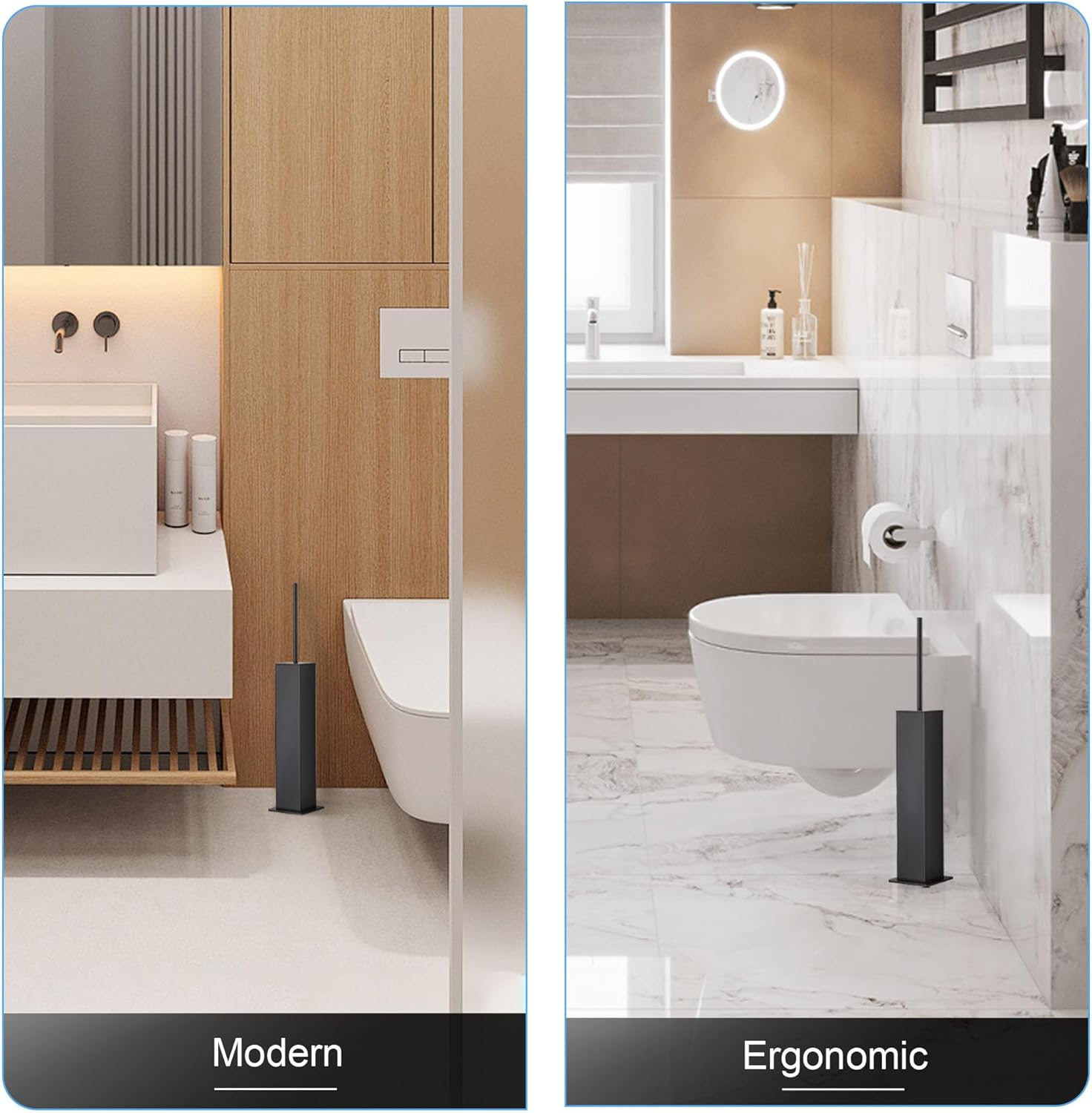 BVL Toilet Brush and Holder Set Black Stainless Steel 304 Square Freestanding Toilet Brush for Bathroom