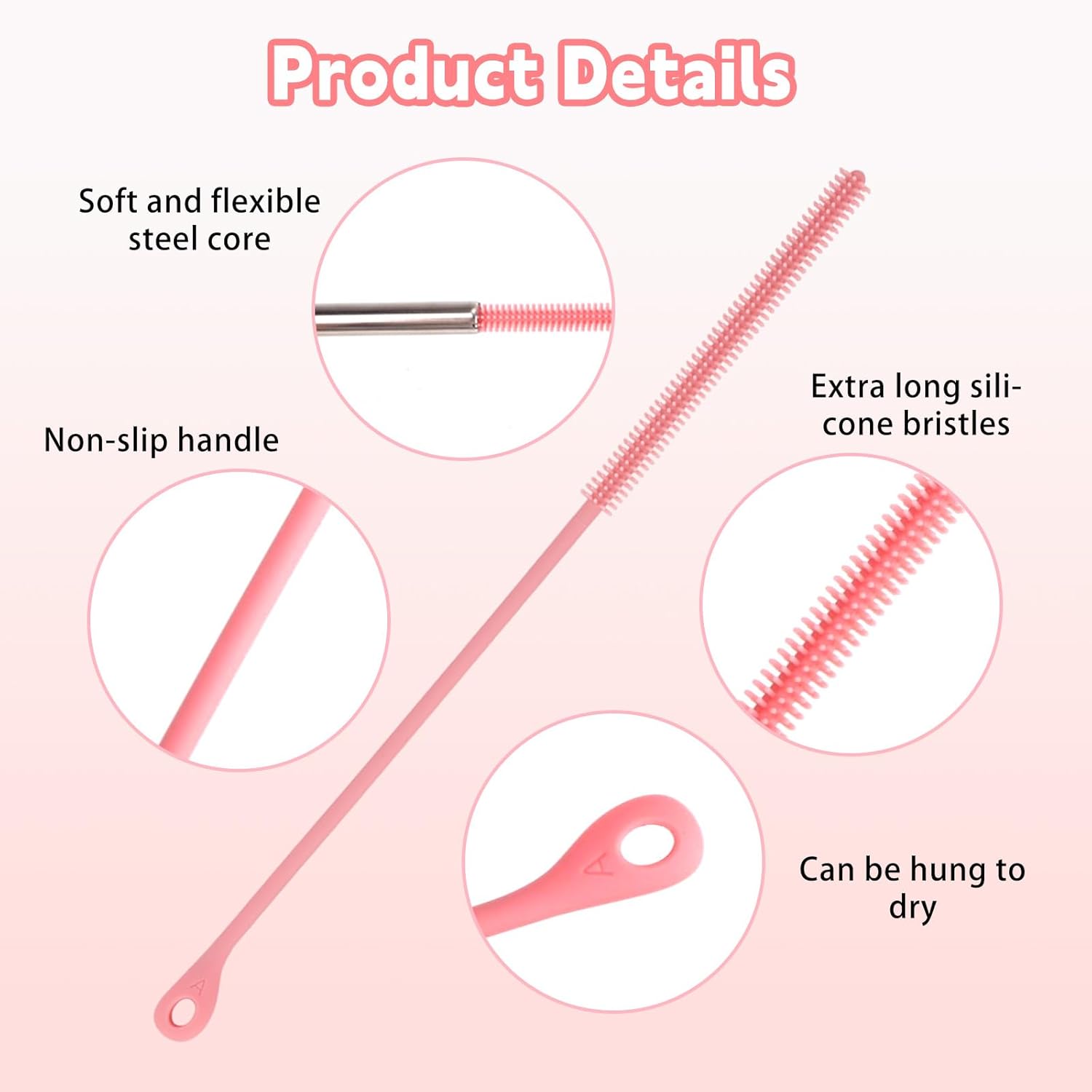 - Convenient & Easy to Use: The silicone straw cleaner brush is designed with a soft and flexible steel core, easily bending to follow the curves of straws or bottle parts. It is dishwasher-safe for easy cleaning and maintenance.