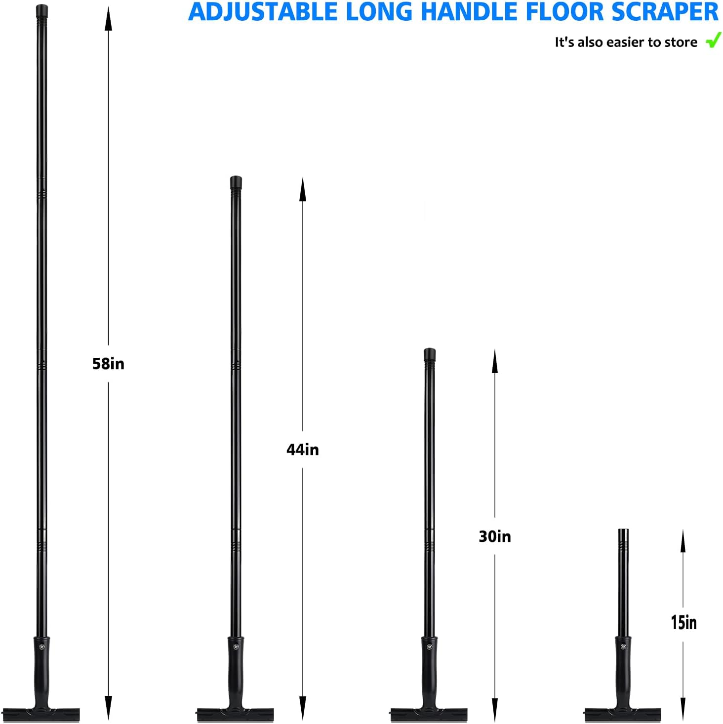 - 15''-58 '' LONG HANDLE FLOOR SCRAPER: Scraper with extension tube is about 15'', come with 3 pcs detachable extension tube,configure the scraper blade length as required for specific application scenarios