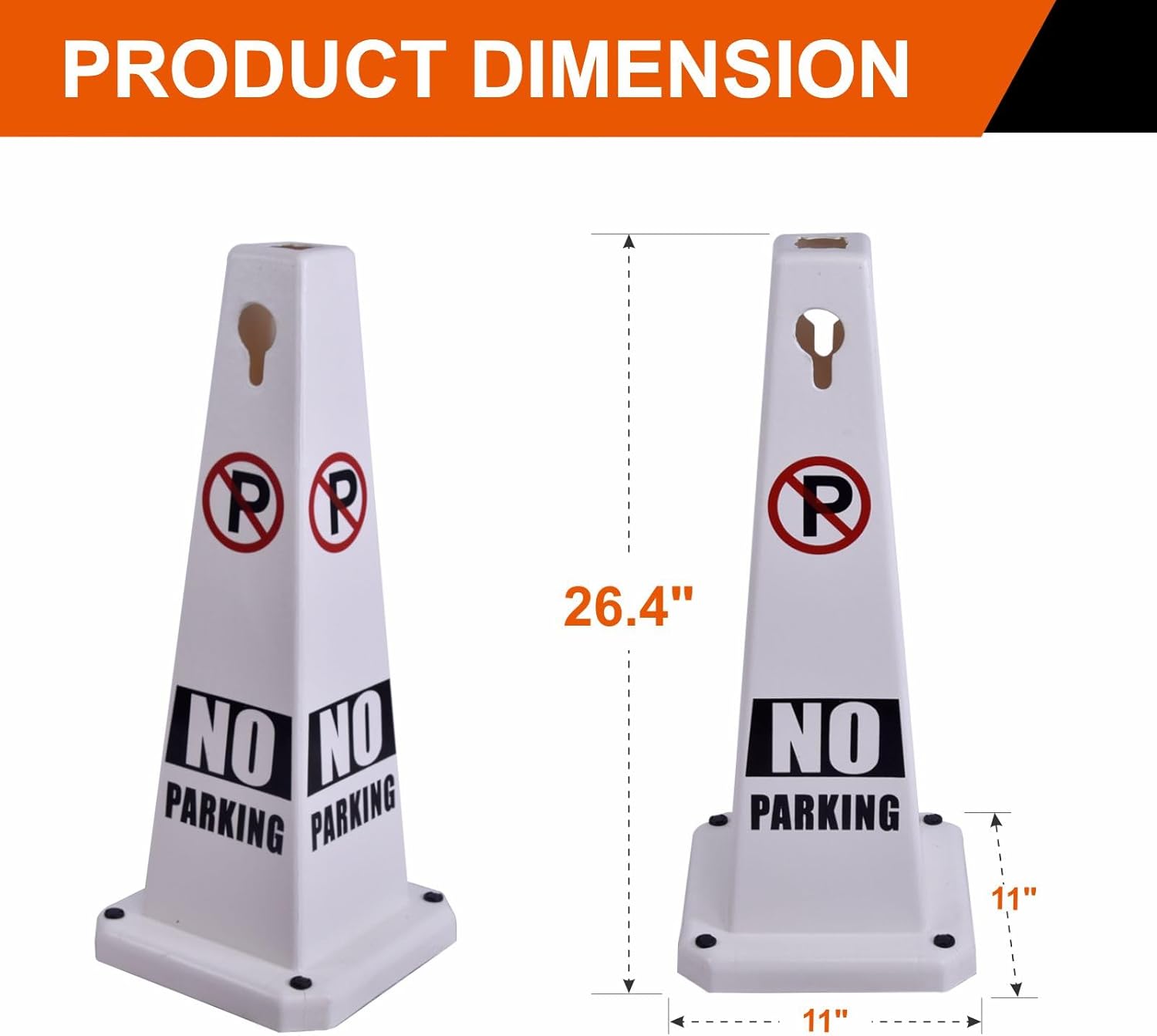 - High Visibility 4-Sided Traffic Cones --- Our large-sized 26.5" message cones feature a 4-sided, 360° visible design, ensuring maximum visibility from every angle. Ideal for NO PARKING, CAUTION WET FLOOR, RESERVED PARKING, and DO NOT ENTER messages, these cones are perfect for directing traffic, marking hazards, and organizing spaces.