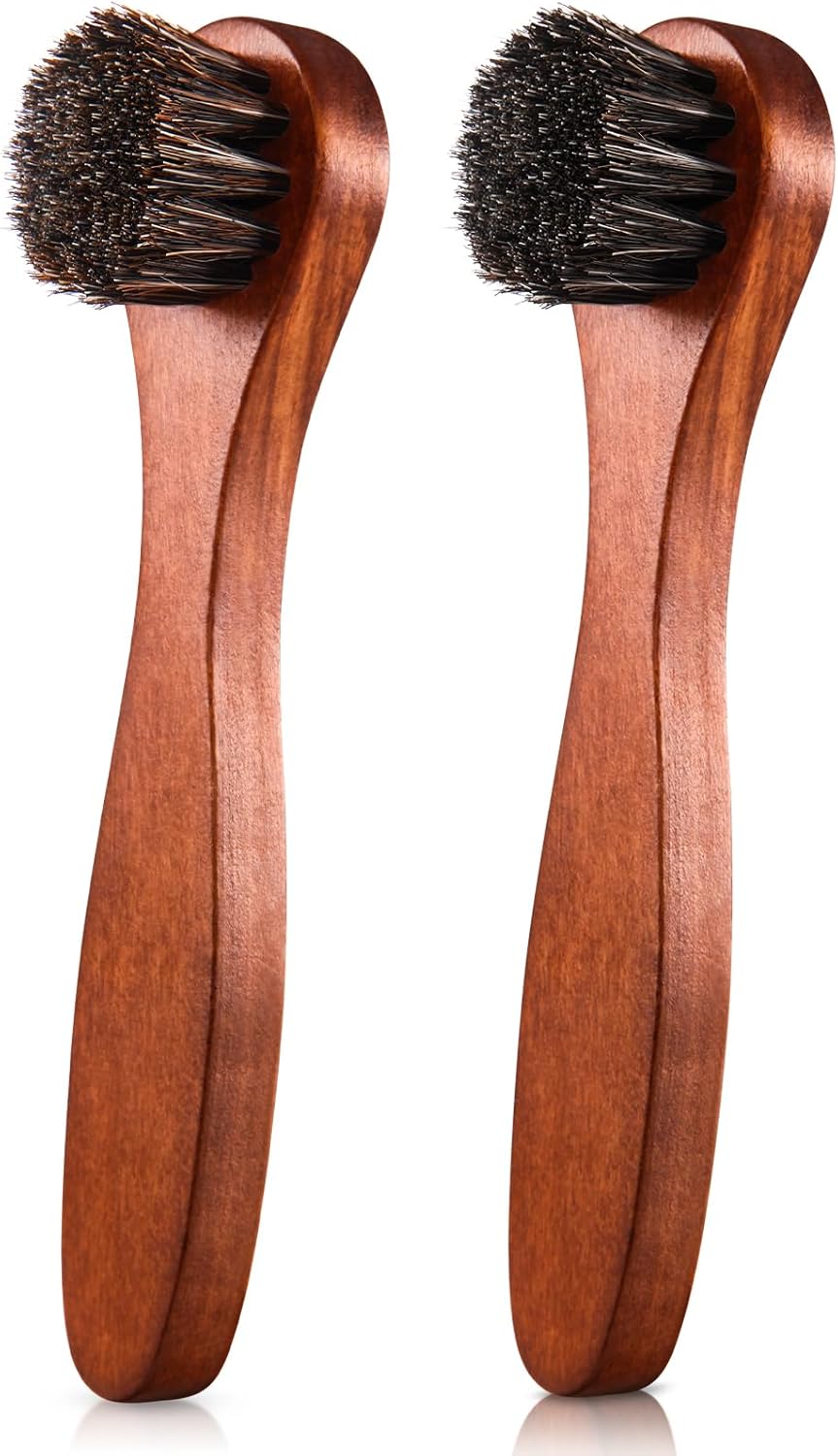 - Long Handle Shoe Brush and Detailing Brush - The long handle design is easy to grasp, and the round head design is suitable for applying shoe polish or shoe wax, easy to pass over the shoe to completely cover with polish; Detailing brush allows easy application of polish to folds and creases in shoe, easy to clean crevices and smear edges and corners