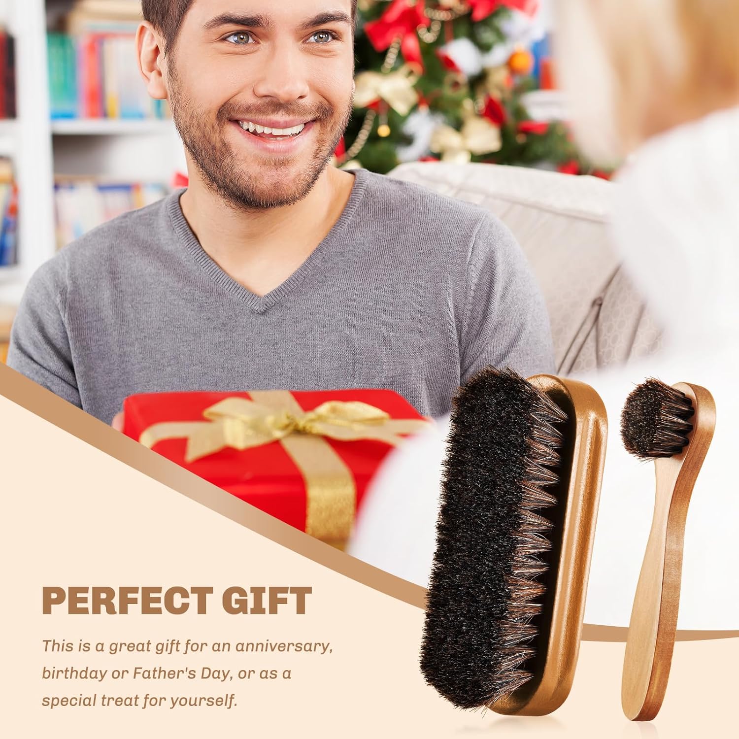 2 Pcs Horsehair Shine Shoes Brush Kit Polish Dauber Applicators Cleaning Leather Shoes Boots Care Brushes Suede Cleaner Brush(Wooden Style F)
