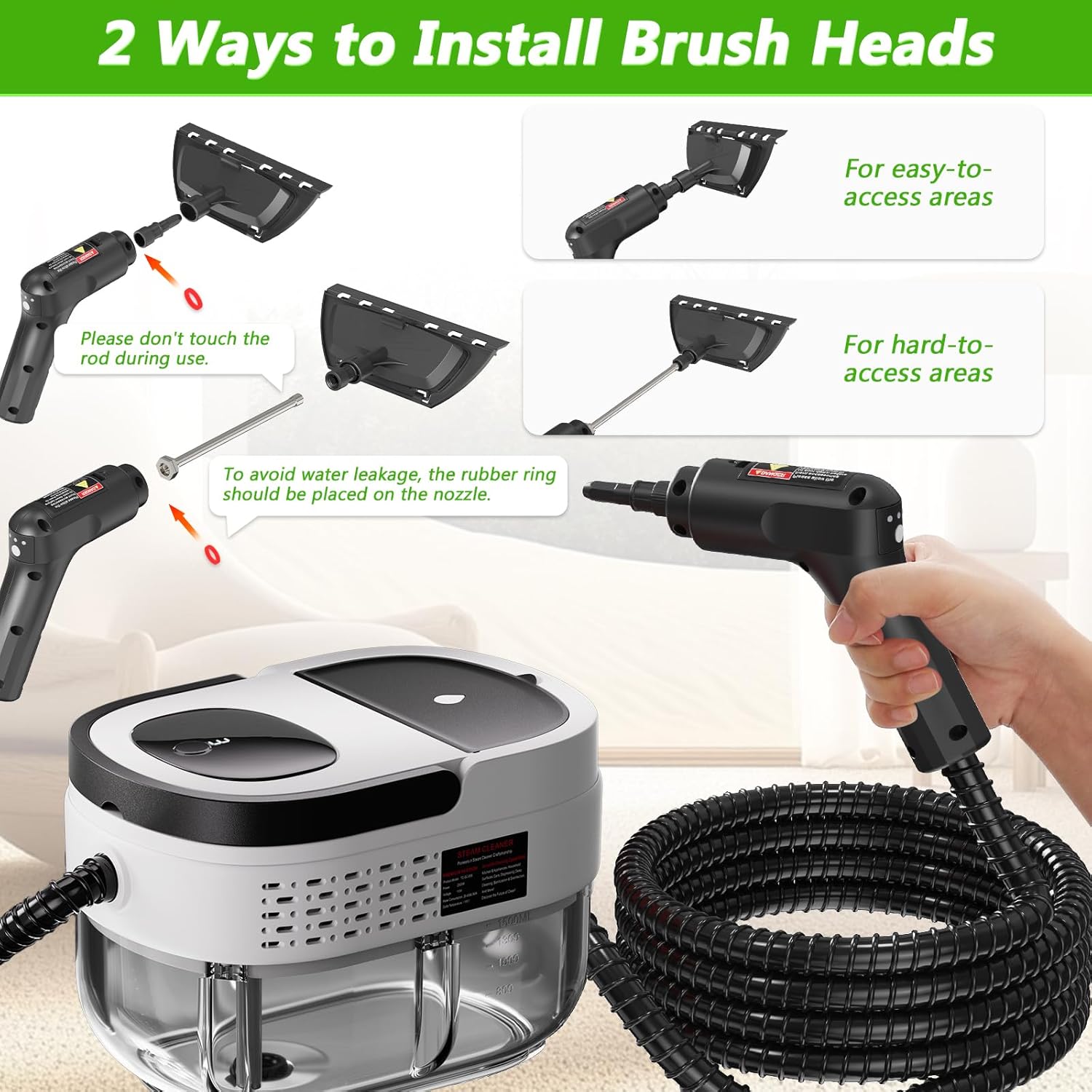 - Stylish & Safe Design with Color Options: Available in 3 color choices, this portable steam cleaner features durable materials and includes gloves for safety. Note: The steam hose gets hot during use—please handle with care to avoid burns