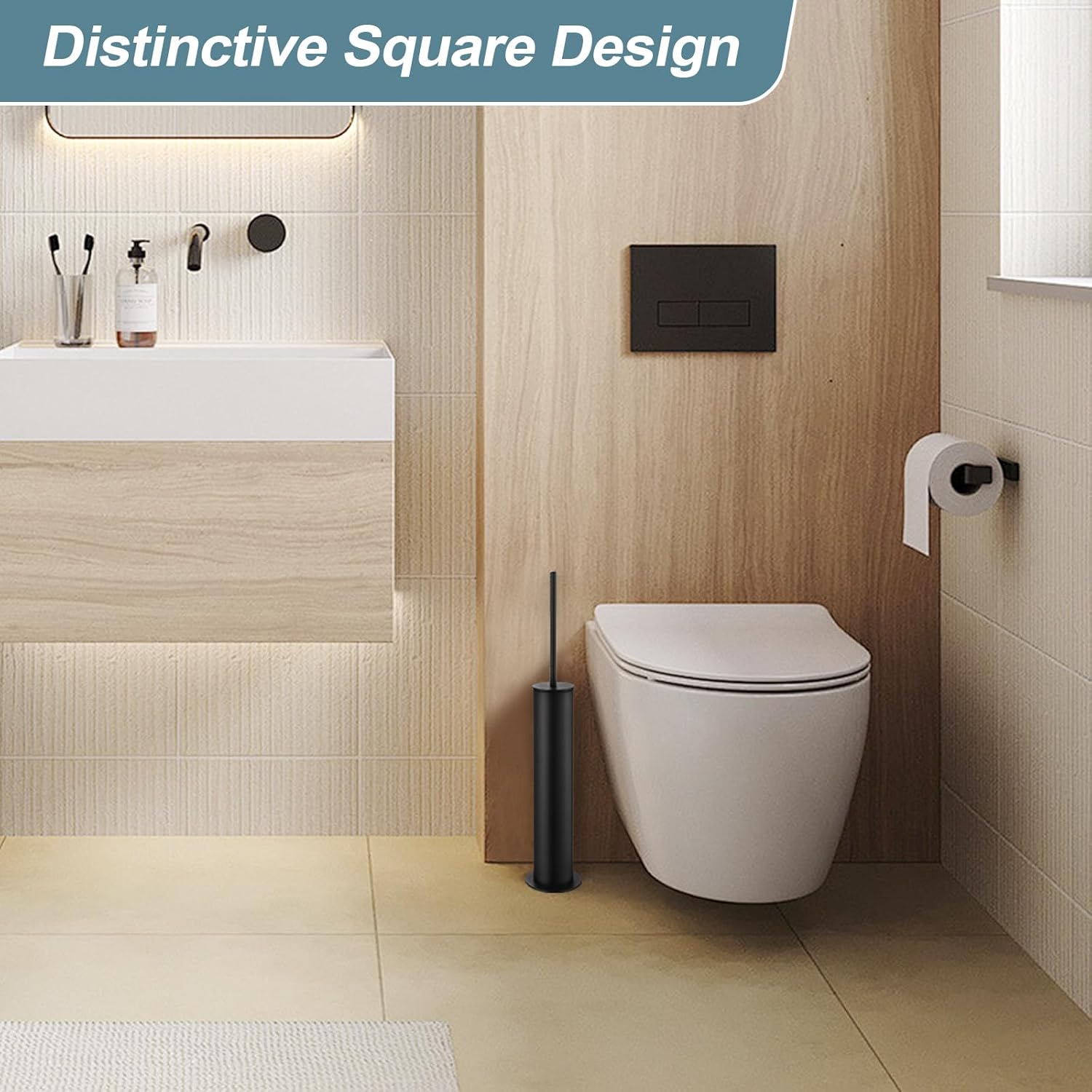 BGL Toilet Brush and Holder Set, Heavy Duty 304 Stainless Steel, Round Base and Long Handle for Bathroom Deep Cleaning, Drip-Proof, Space Saving for Storag, Black