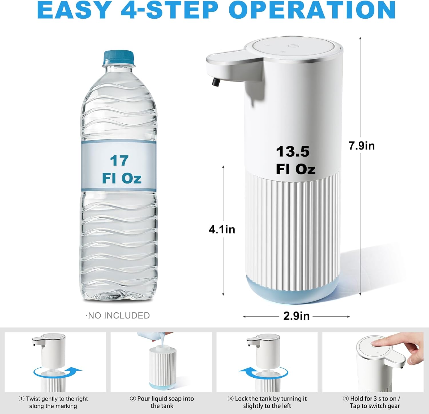 - 【SMART TOUCHLESS OPERATION】The hands-free dispensing with advanced infrared sensing technology! A quick wave under the spout releases a precise amount of liquid, minimizing waste and mess. Customize output with 4 adjustable modes to meet your all needs. The battery indicator light allows you to charge at any time. This automatic hand soap dispenser for bathroom avoids cross-infection, makes your washing more cleaning and convenient.