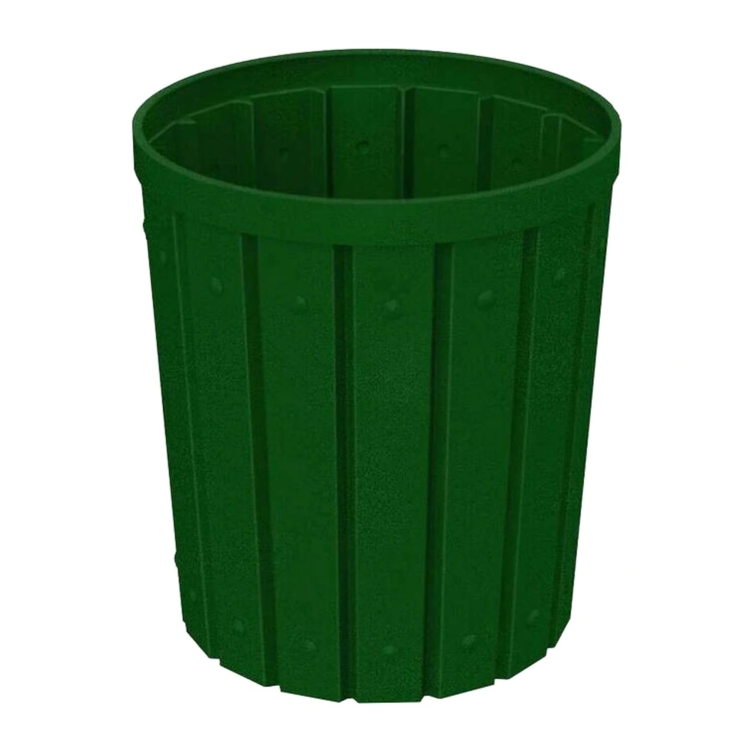 - MODERN SLATTED BODY AND ROUND TRASH CAN DESIGN: Part of our Signature Series, this outdoor trash can with lid features a stylish slatted or round look with grooved raised panels. Choose from 13 colors to match your outdoor trash can décor, replacing outdated 55-gallon drums.