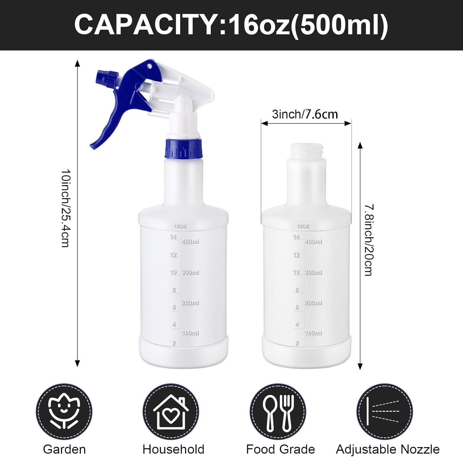 Eccliy 12 Pcs 16 Oz Plastic Spray Bottle, Adjustable Empty Reusable Sprayer for Cleaning, Planting, Water, Bathroom and Kitchen, BBQ, Commercial and Residential(Blue & White,Measurement)