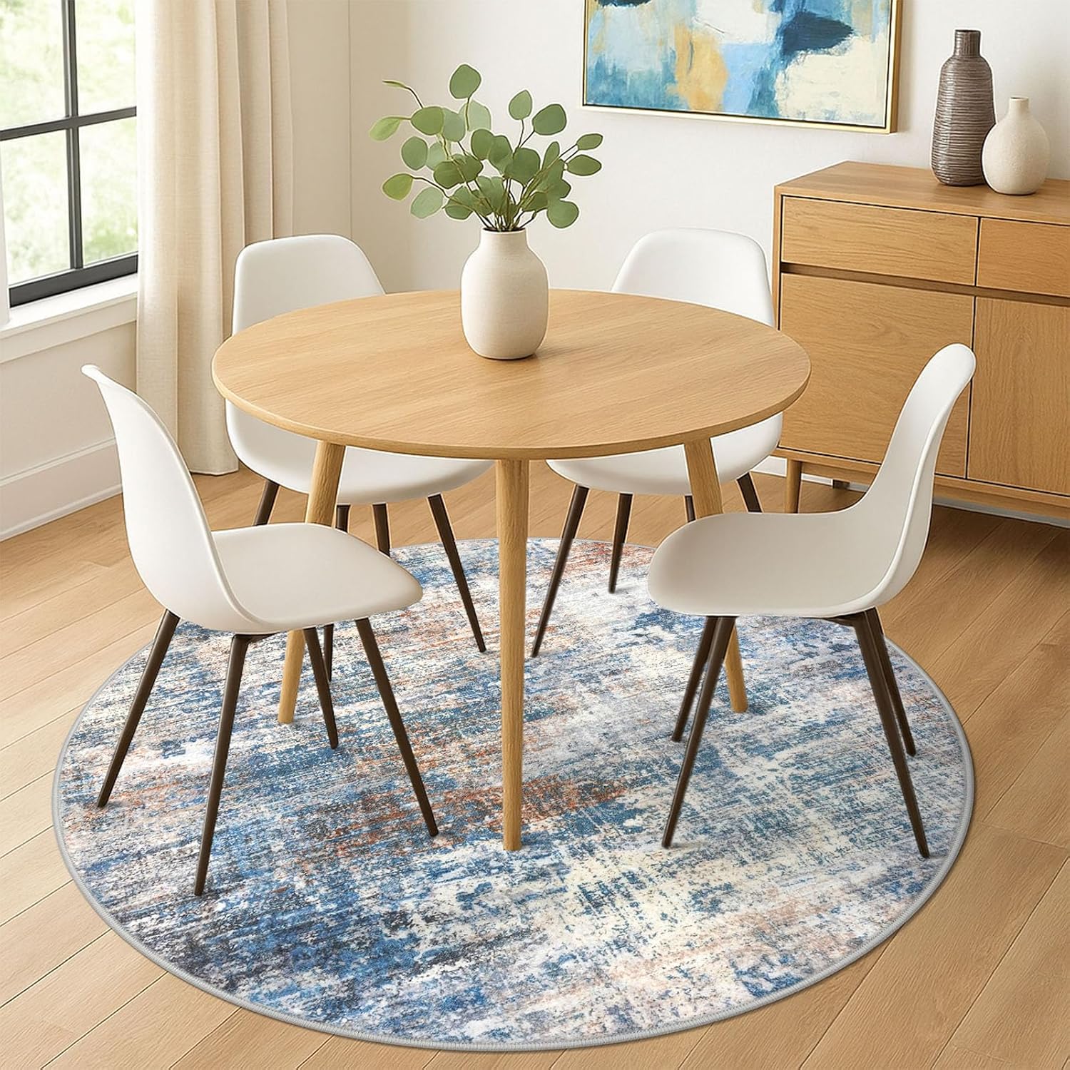 IOHOUZE Abstract Round Area Rug 6 Ft Washable Circle Rugs Large Round Rug Non Slip Thin Soft Circle Rugs, Printed Faux Wool Floor Carpet for Bedroom Living Room Dining Room Nursery, Blue Rust