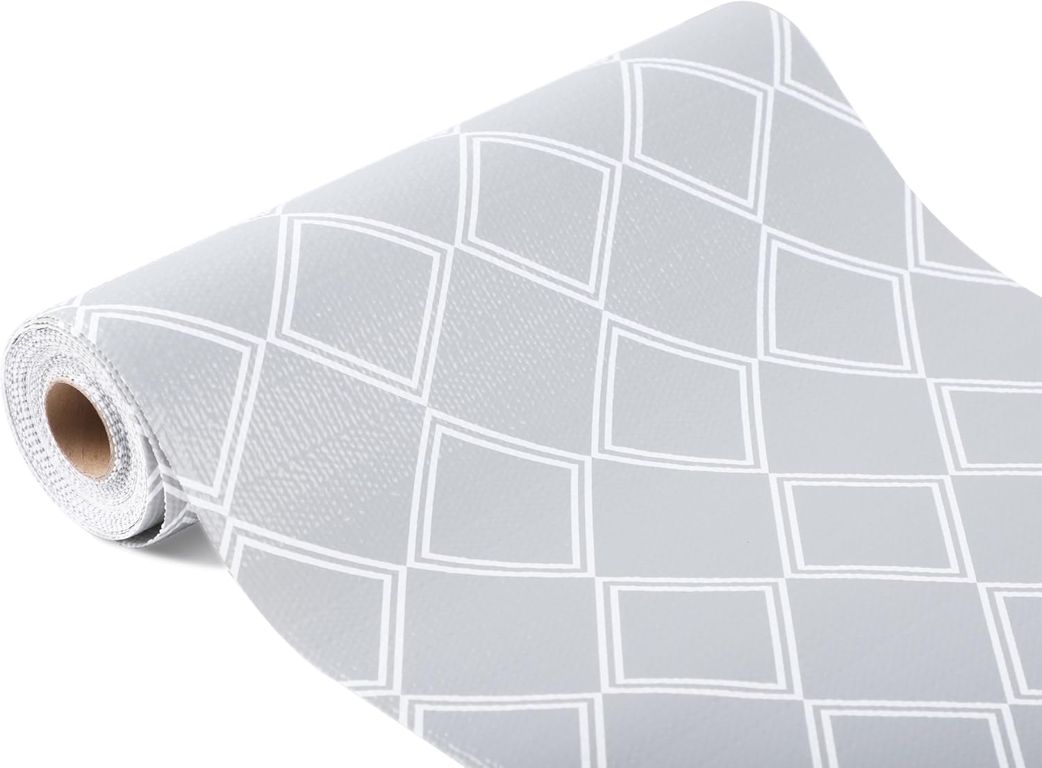 - PREMIUM QUALITY - The cabinet shelf liner ia made of food grade material, BPA free without unpleasant smells, could be in touch with vegetables and fruits directly, will be a great choice for those seeking a safe and reliable pantry liner for shelves and cabinets. High quality and resuable, featured with geometric pattern looks more awesome and fashion for your home.