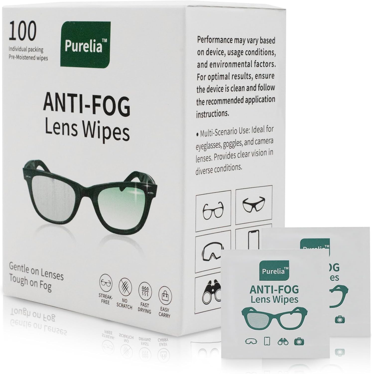 Anti-Fog Lens Wipes,100 Count, Quick-Clean Lens Cloths for Eyeglasses, Goggles, Screens, Portable Individually Wrapped Sheets, Pre-Moistened Cleaning Wipes for Eyeglasses