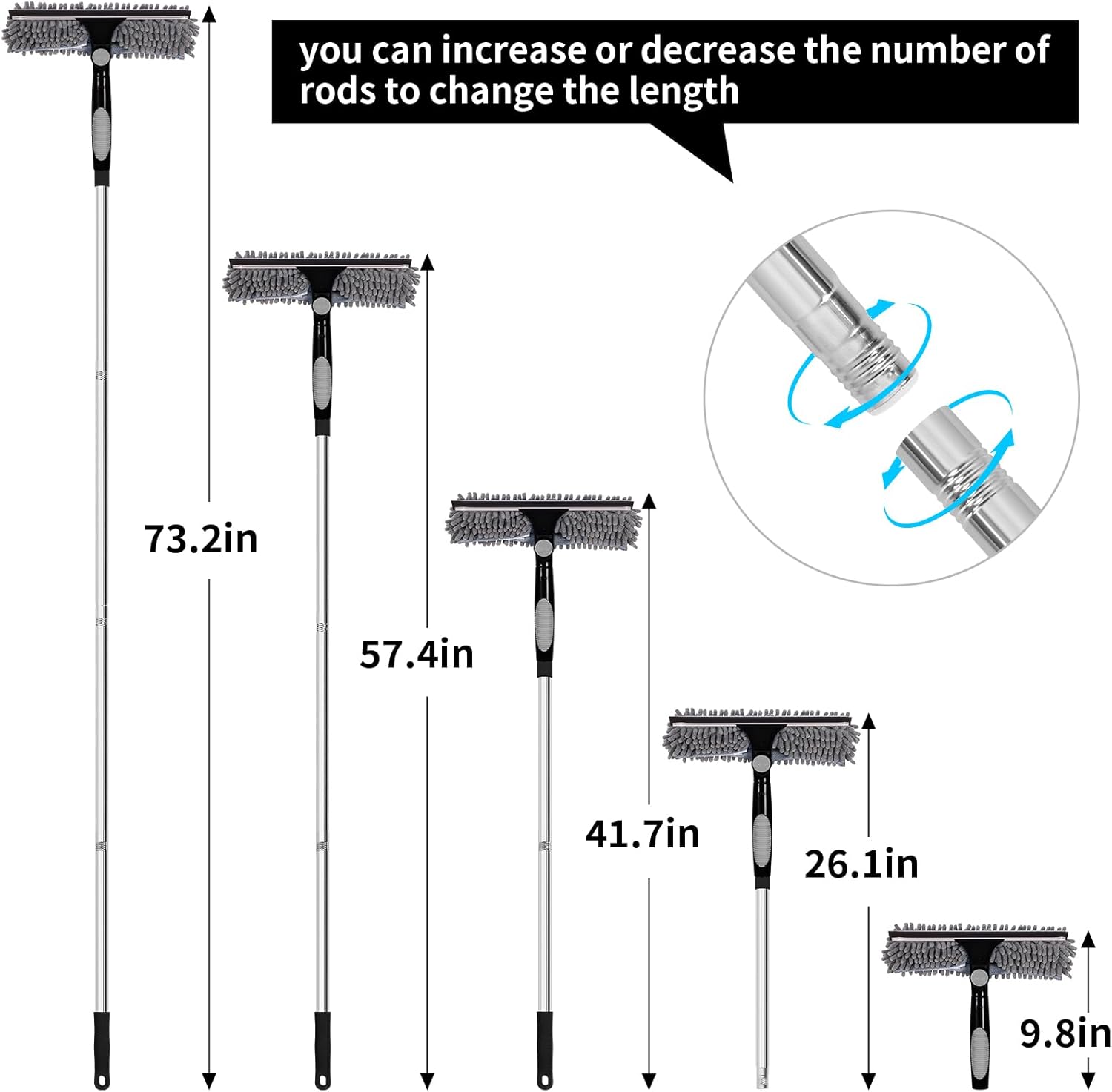 - EASY TO DISASSEMBLE AND REASAAEMBLE:Our poles can be connected and disconnected by simply twisting them, and the inside of the wipes are designed with Velcro and suspension so they won't fall off during use, and are simple and easy to replace and remove.
