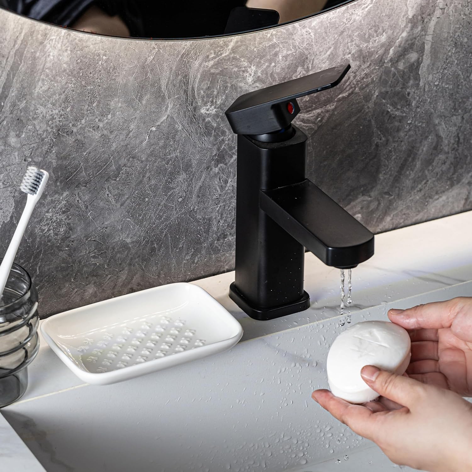 - PREMIUM CERAMIC & EFFORTLESS CLEANING: Crafted from premium and enduring ceramic, this soap dish features waterproof, slip-resistant, and heat-resistant properties. The unglazed bottom ensures stable placement to avoid sliding. Its smooth surface enables easy maintenance - gently wipe with a soft brush or clean in the dishwasher (weekly recommended).