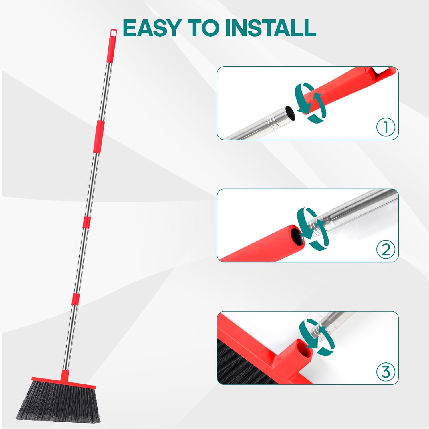 - ENHANCED LARGE BROOM: Indoor outdoor broom with12.6 " Wide heavy duty Broom Head, about 58" tall, Height can be adjusted according to personal comfortable needs. Wide broom head reaches wider areas of the floor and cleans more efficiently