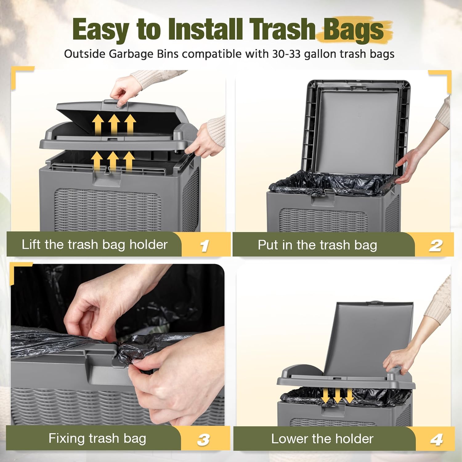 - Various Outdoor Scenarios: Our outdoor trash cans are perfect for use on patios, pools, poolside, porches, gardens, backyards and more