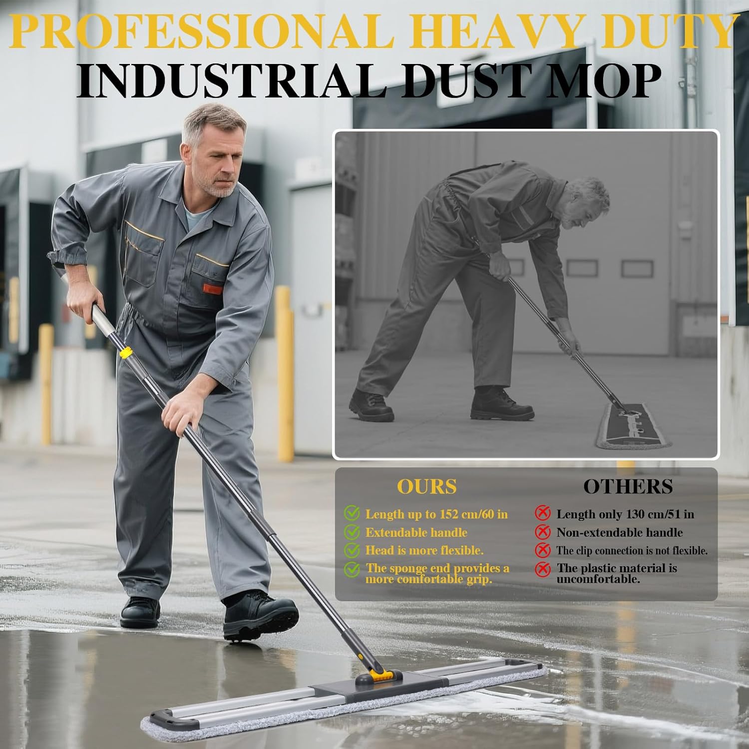 Masthome 36" Commercial Mop, Heavy Duty Industrial Floor Mop with 3 Microfiber Pads, 60" Adjustable Large Dust Mop,Wet Dry Flat Mops for Office Garage Warehouse Factory Mall