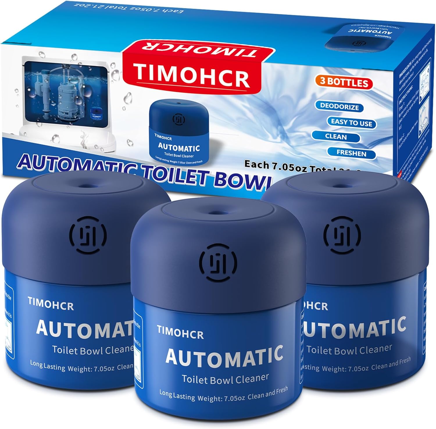 - Long Lasting Continuous Clean:TIMOHCR Toilet bowl cleaner slowly release deep cleaning solution over time which extends clean lifetime. 3 bottles will be about 6-8 months' supplies. It works deep within the toilet bowl, reducing scale formation and keeping surfaces smooth, good for homes with hard water