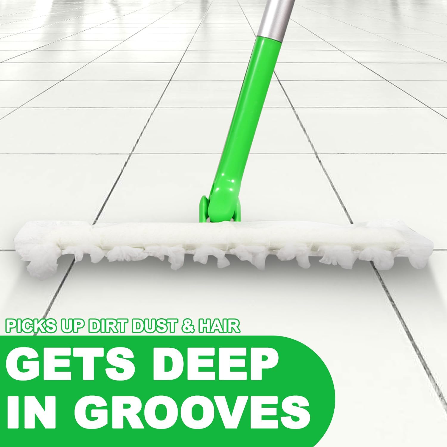 - Heavy-Duty Electrostatic Dry Sweeping cloths – Each disposable dry sweeping pad features over 30,000 3D microfiber bristles + S-groove design that trap and lock dust, dirt, debris, and pet hair with 2–3x more cleaning power than standard floor mop refills. Deep cleans crevices, corners, and grout lines with ease