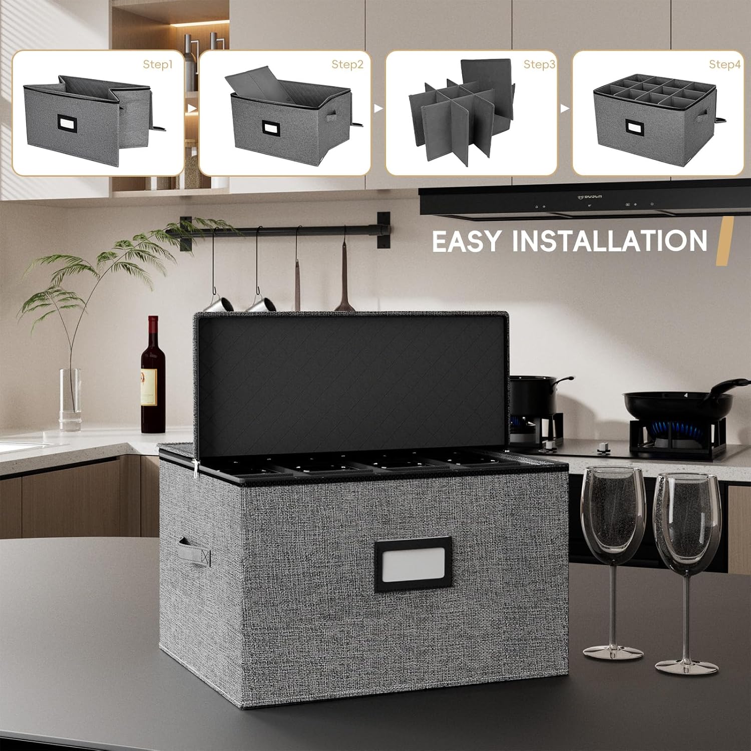 homyfort China Storage Containers (2 Pack Stemware Storage Box, Grey)