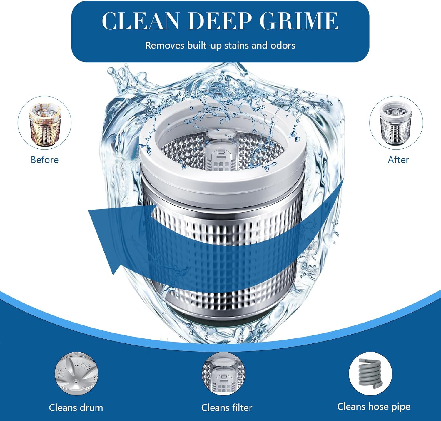 - [Deep Cleaning]: With just 1 wash cycle, this washing machine cleaner tablets cleans your drum, valves, hoses and filters. It effectively removes hard water buildup, keeping your machine.