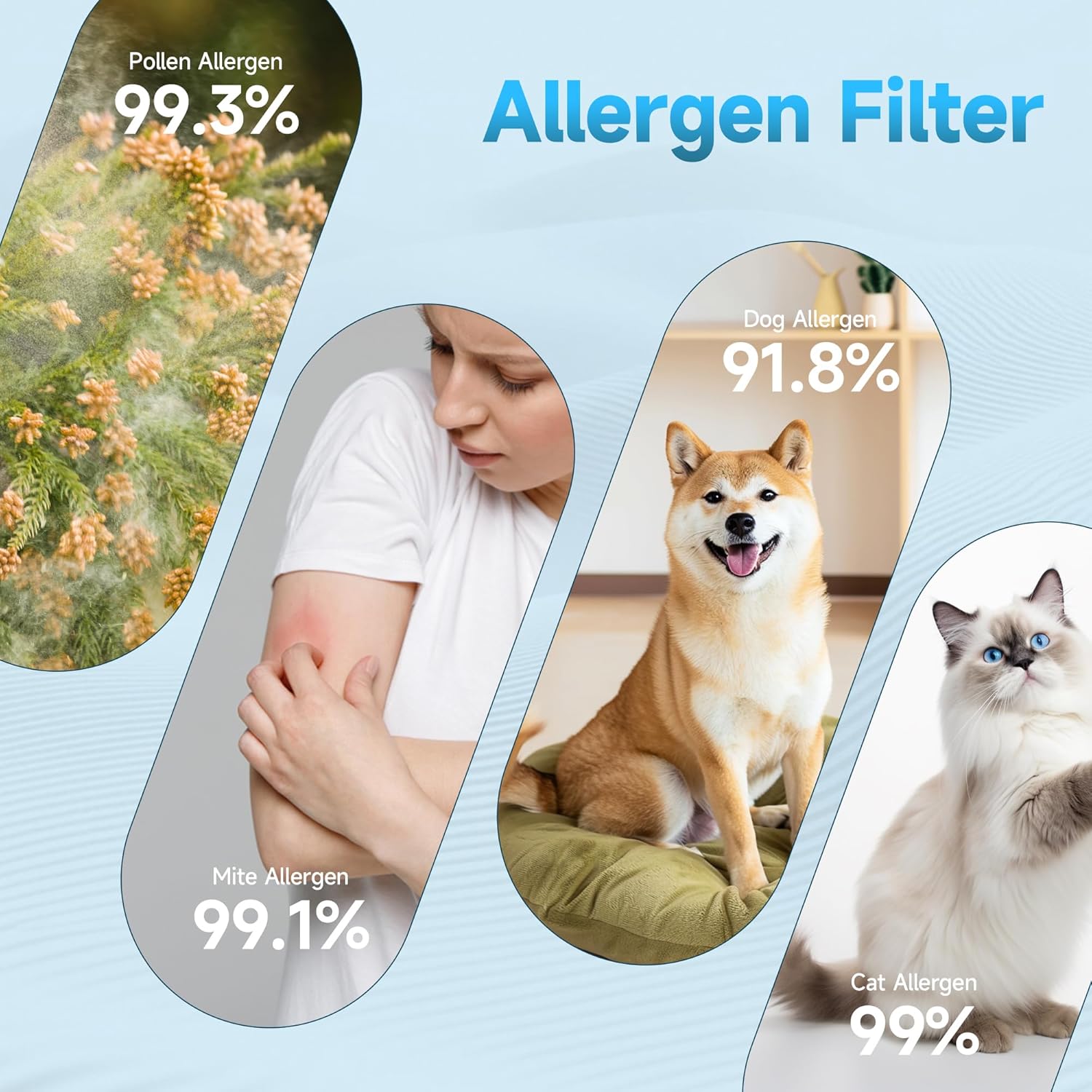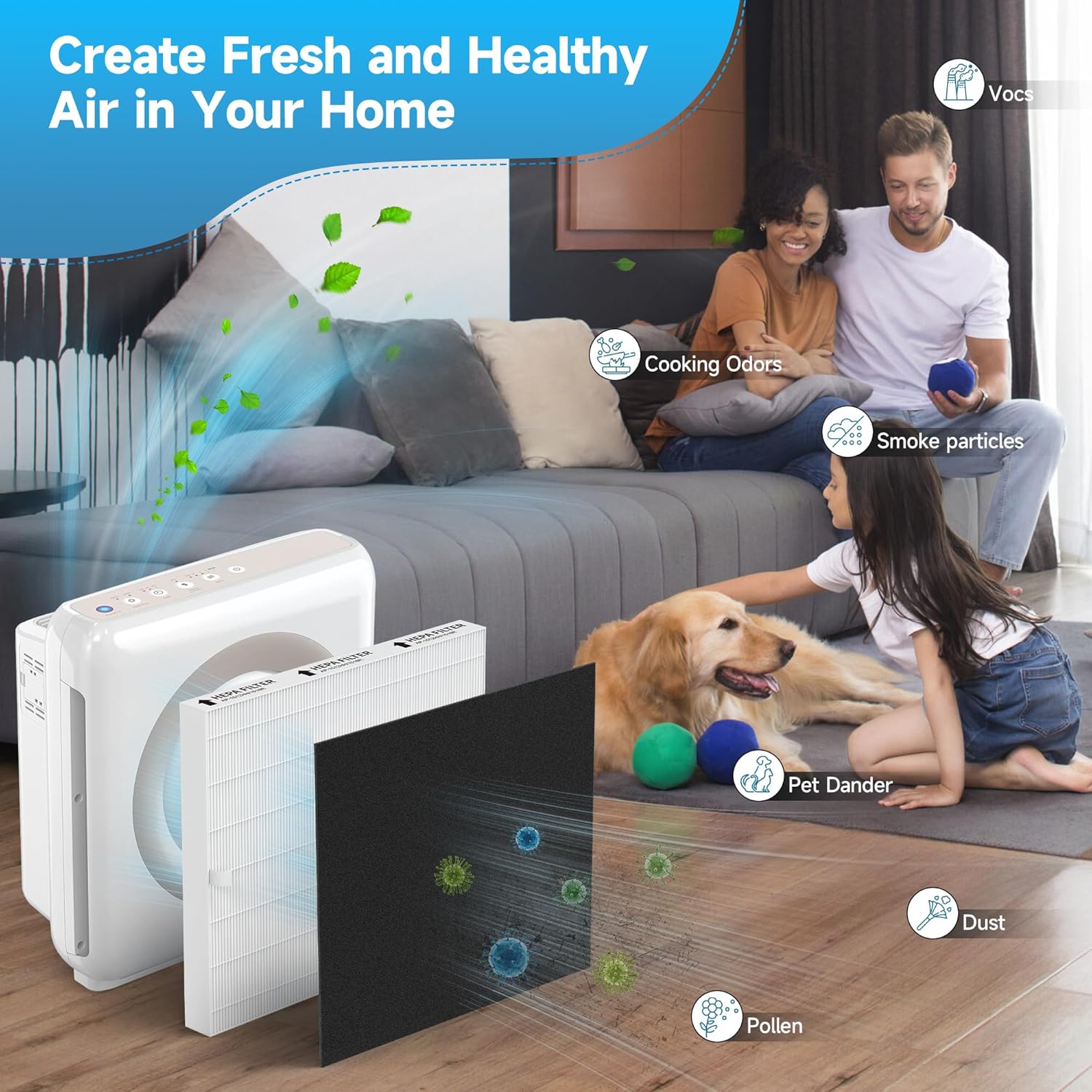 - Advanced Contaminant Removal:Premium filtration (0.03-micron particles) + activated carbon adsorption for household odors (smoke, cooking, pets)